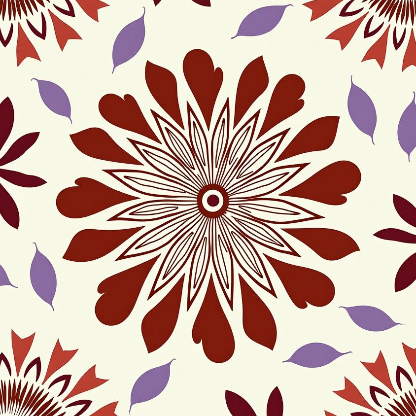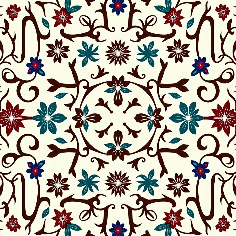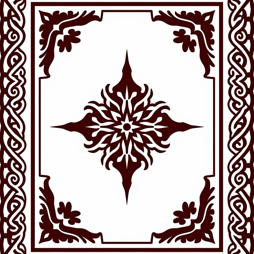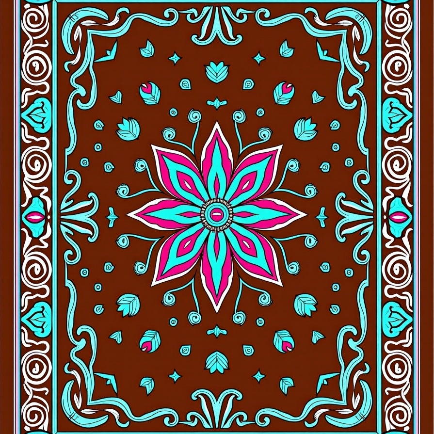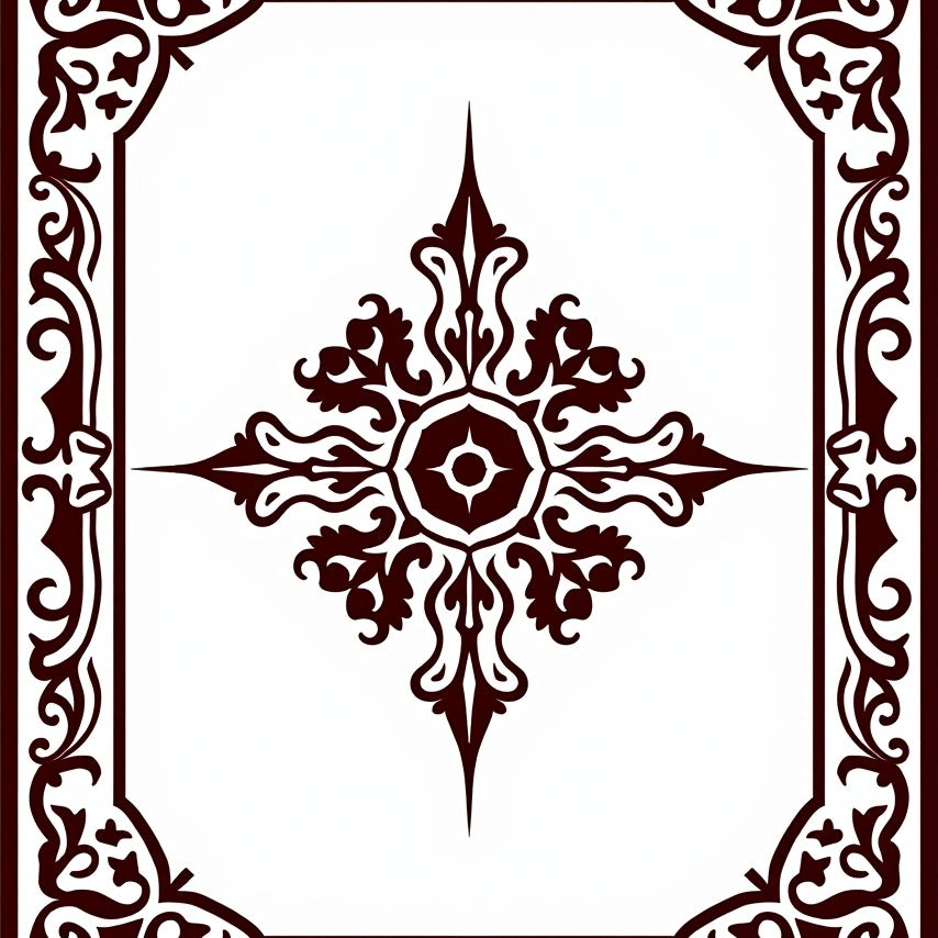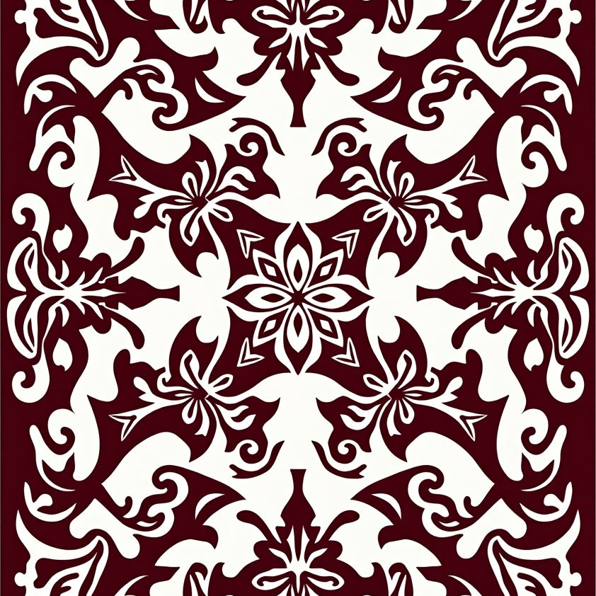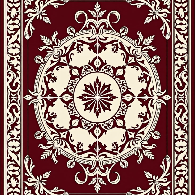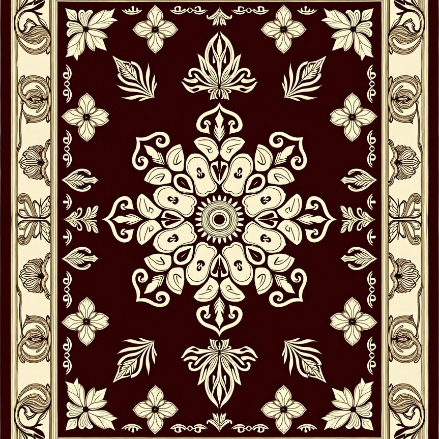 Luxurious Burgundy Medallion with Ornate Floral Accents(Brown)