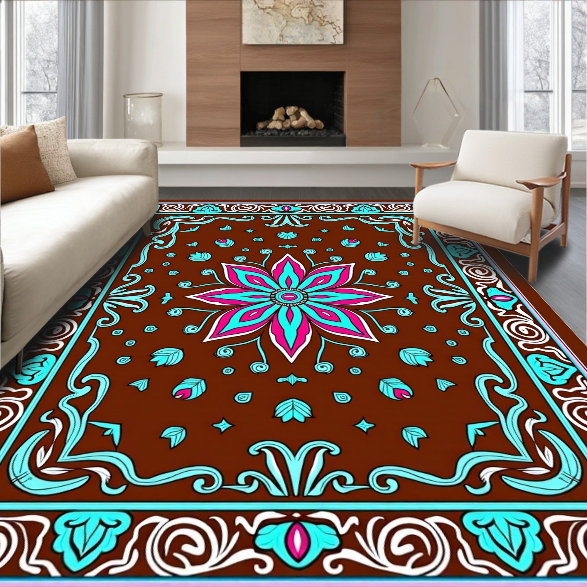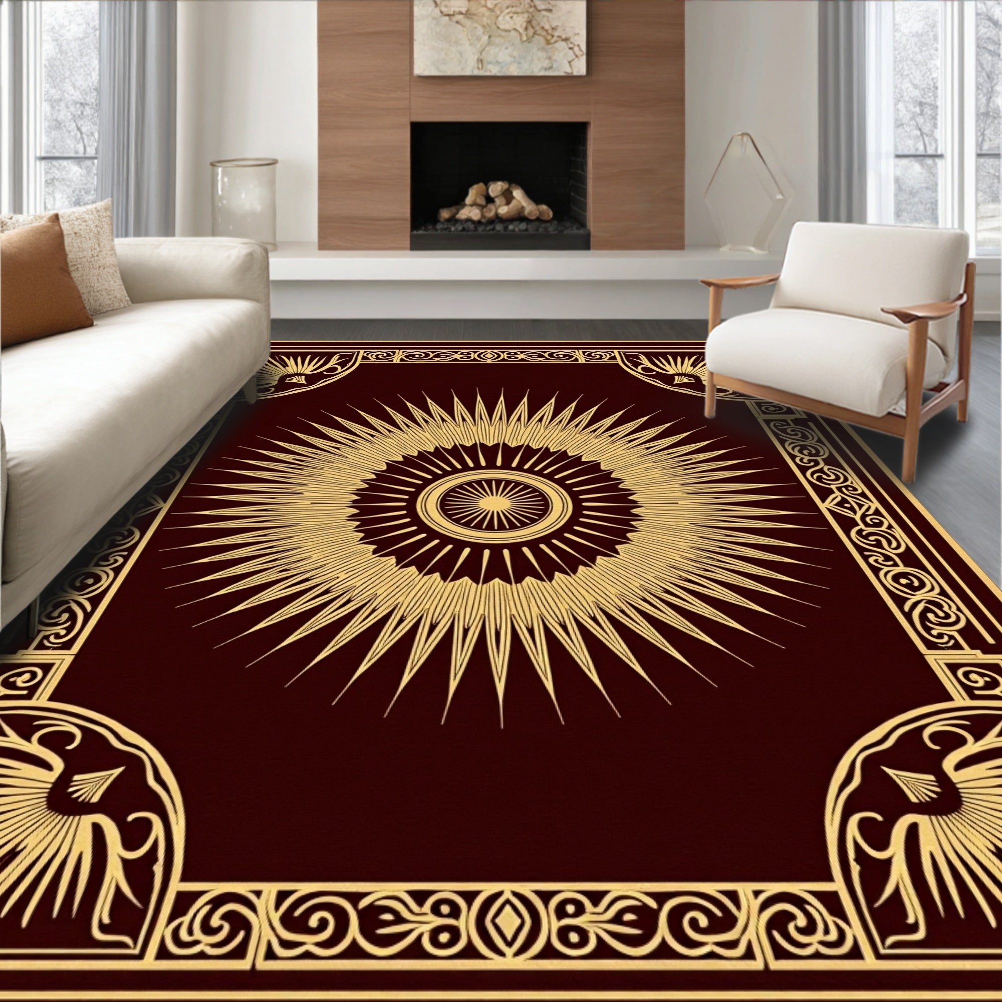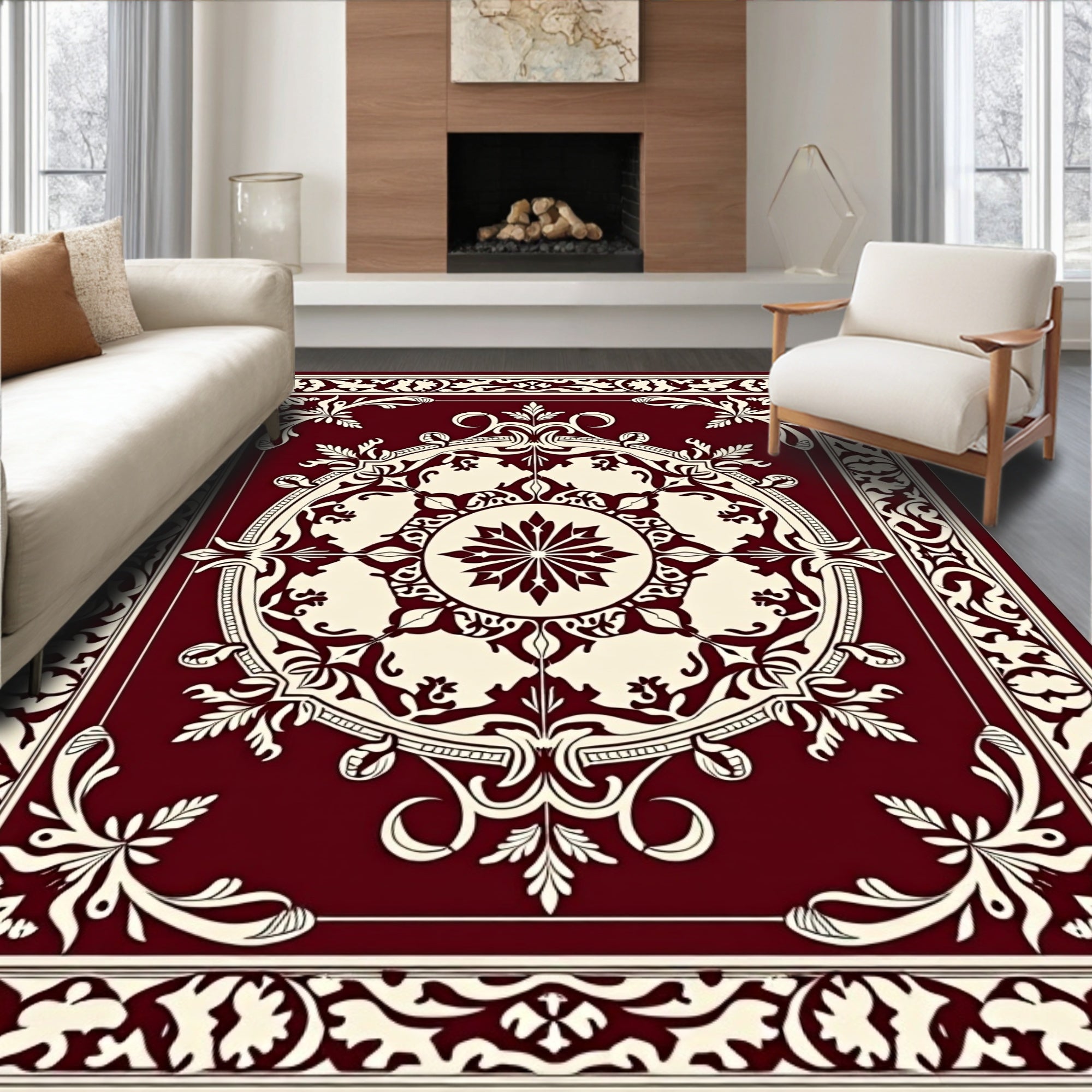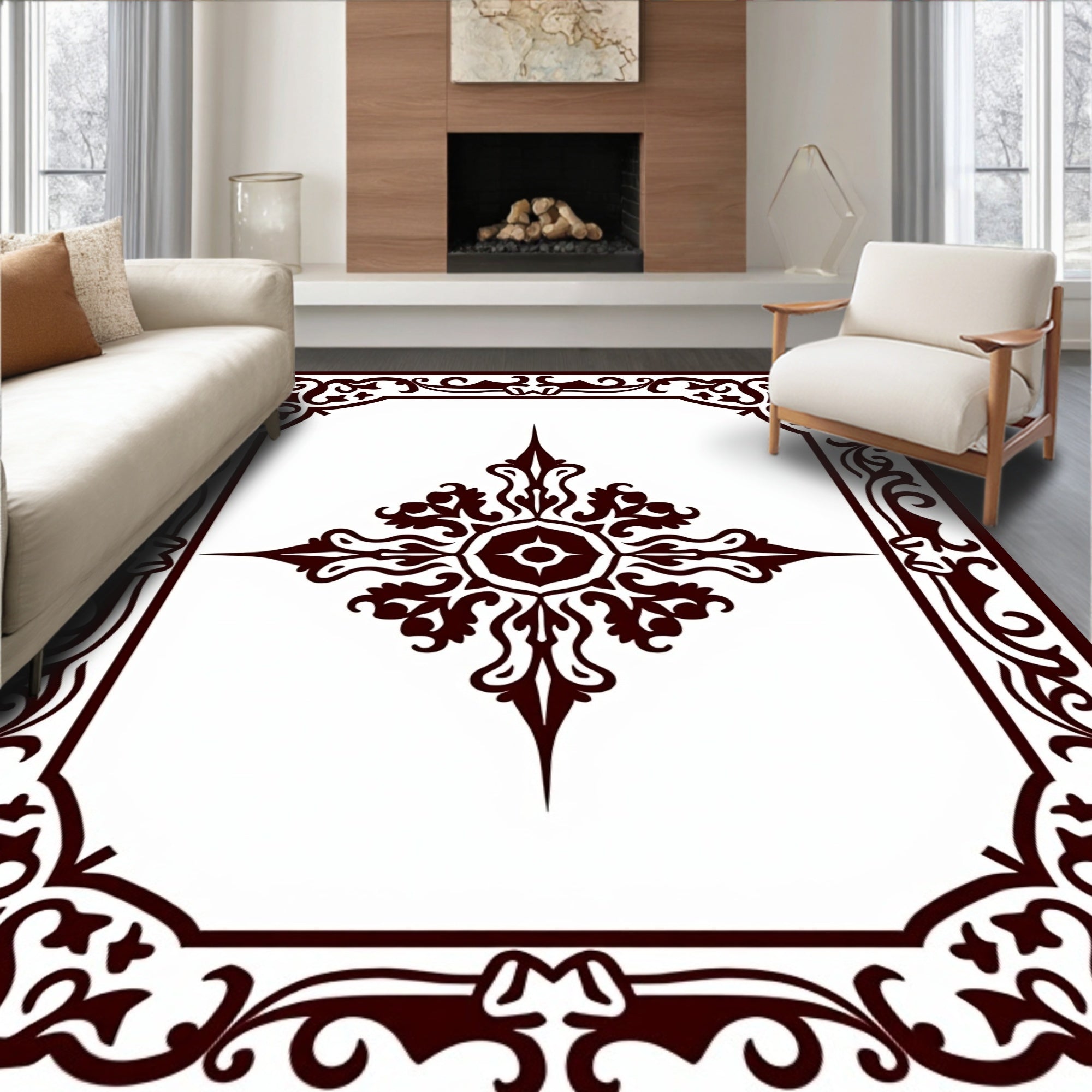 Luxurious Burgundy Medallion with Ornate Floral Accents(Brown)
