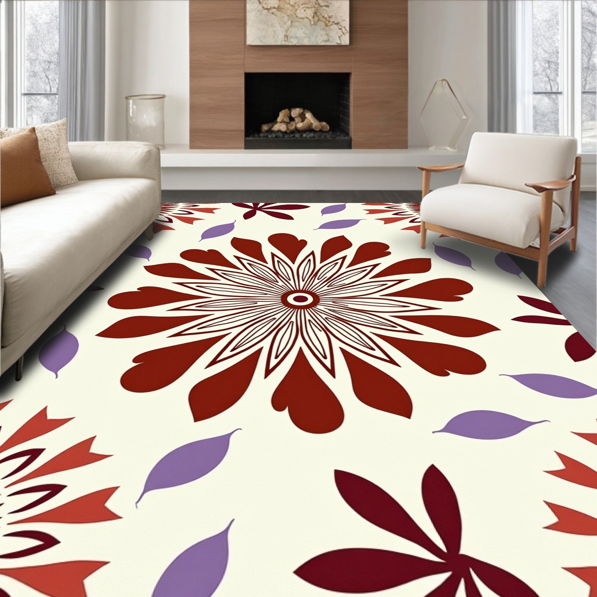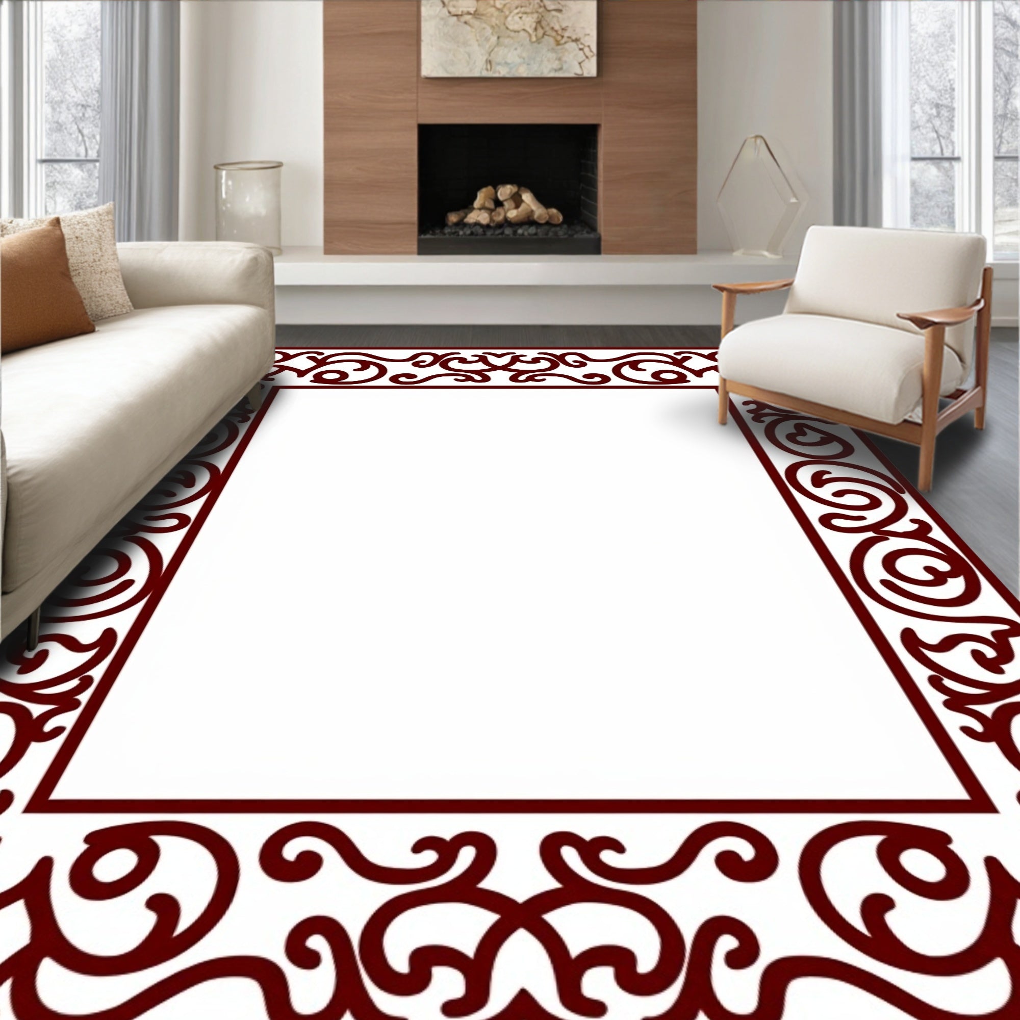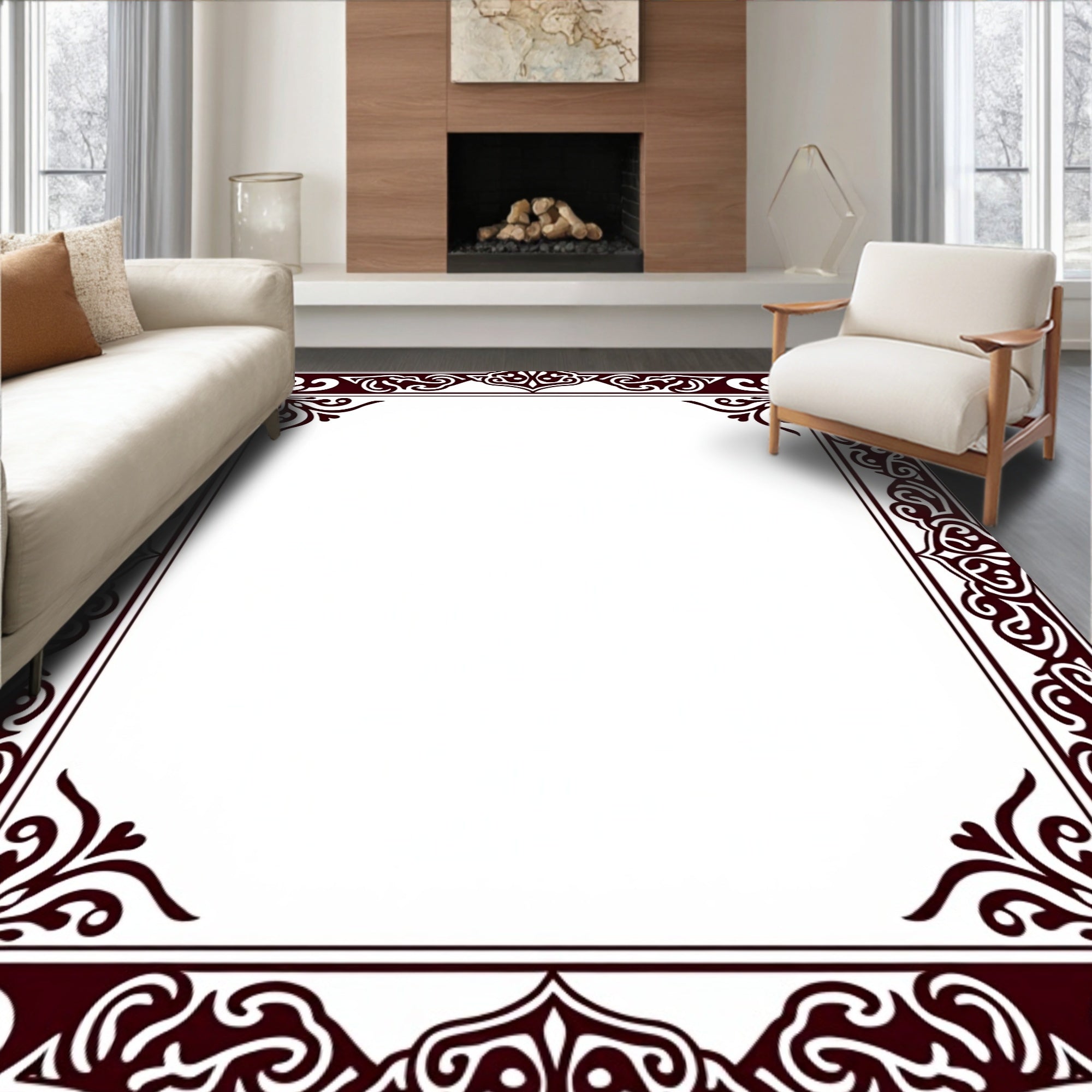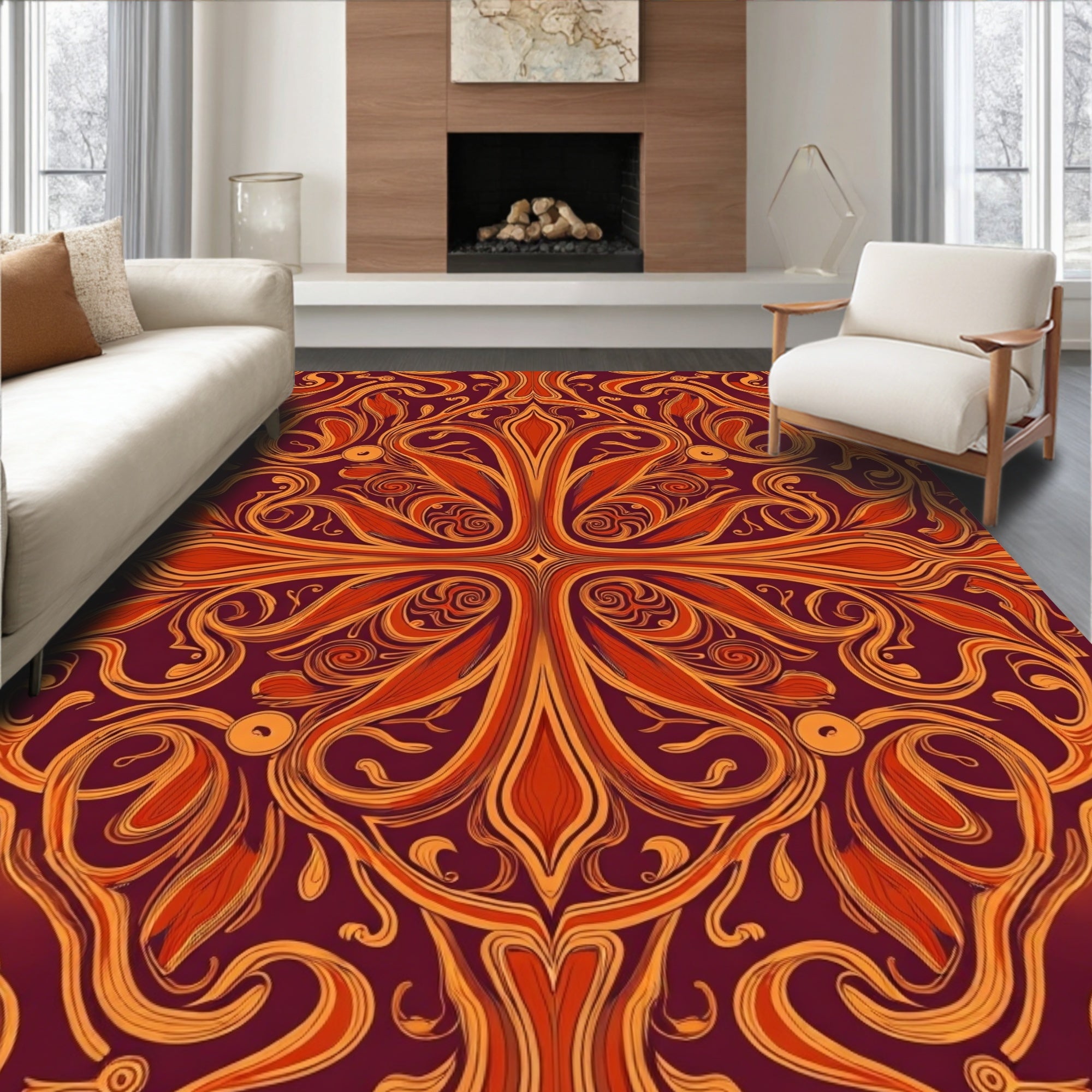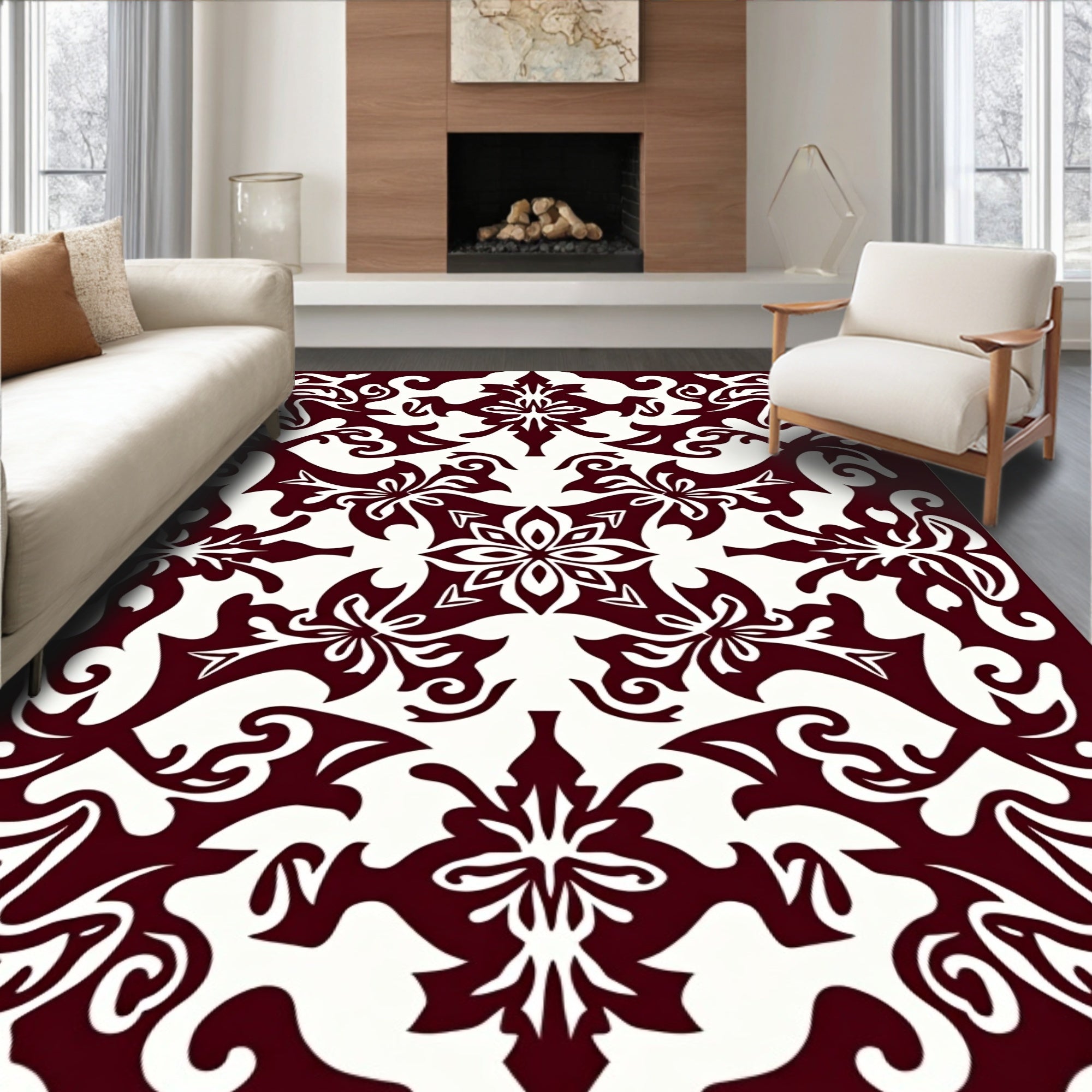 Luxurious Burgundy Medallion with Ornate Floral Accents(Brown)