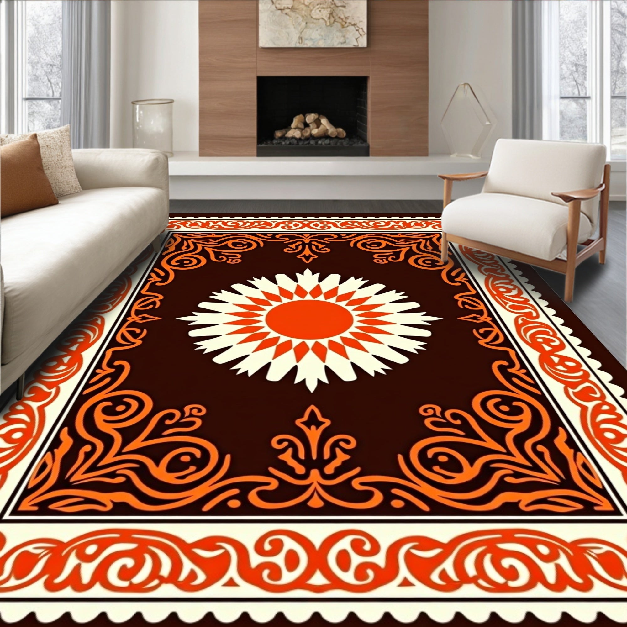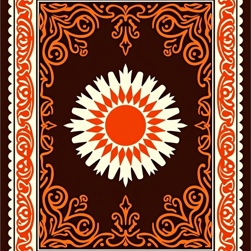 Sunburst Medallion with Interlocking Floral Motifs and Ornate Borders(Brown)