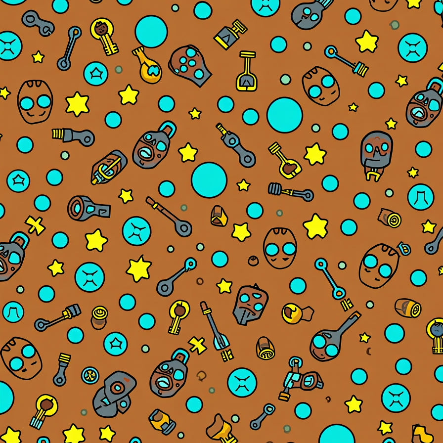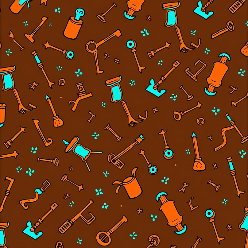 Dungeon Items Interlocking Motif with Pixel Keys and Magic Bottles(Brown)