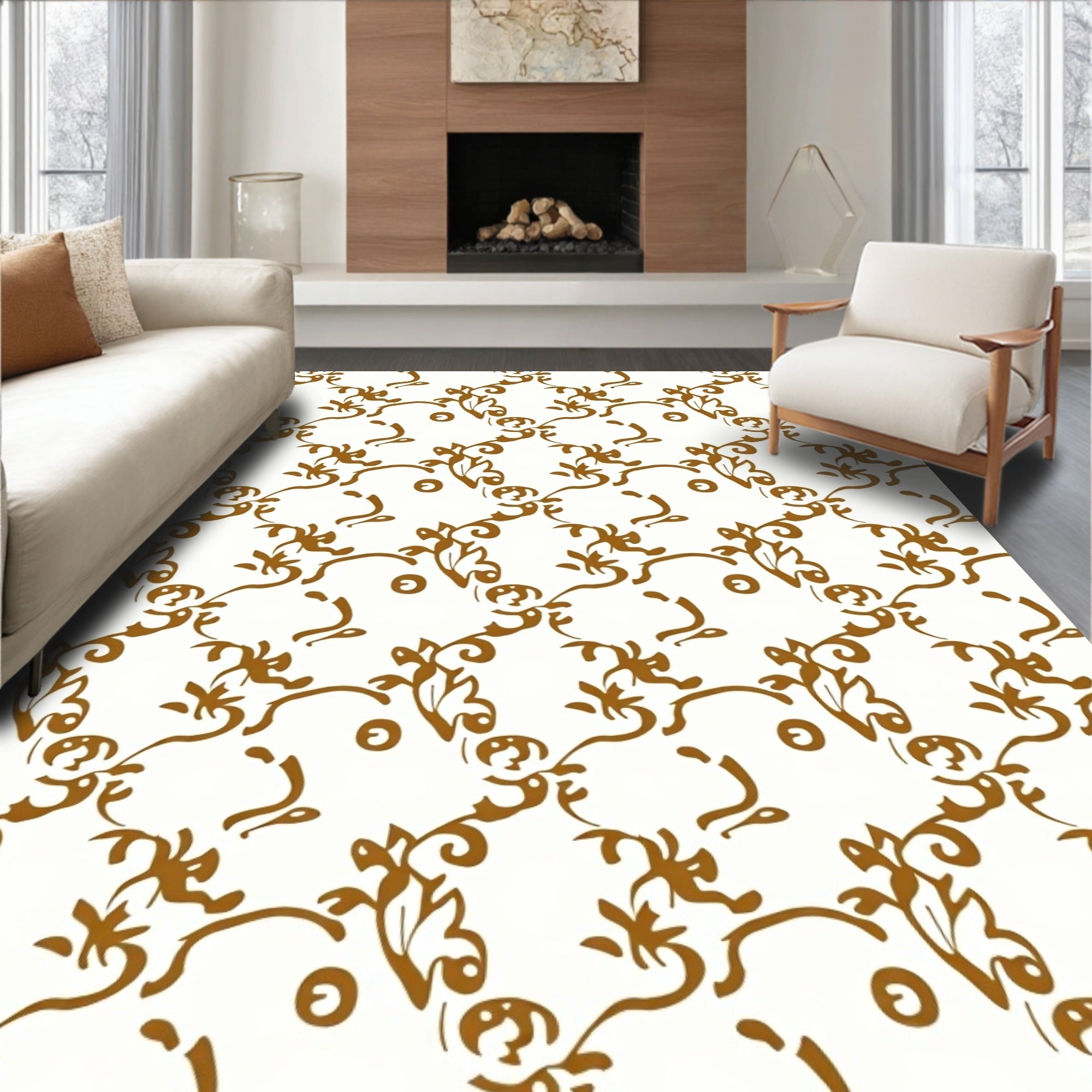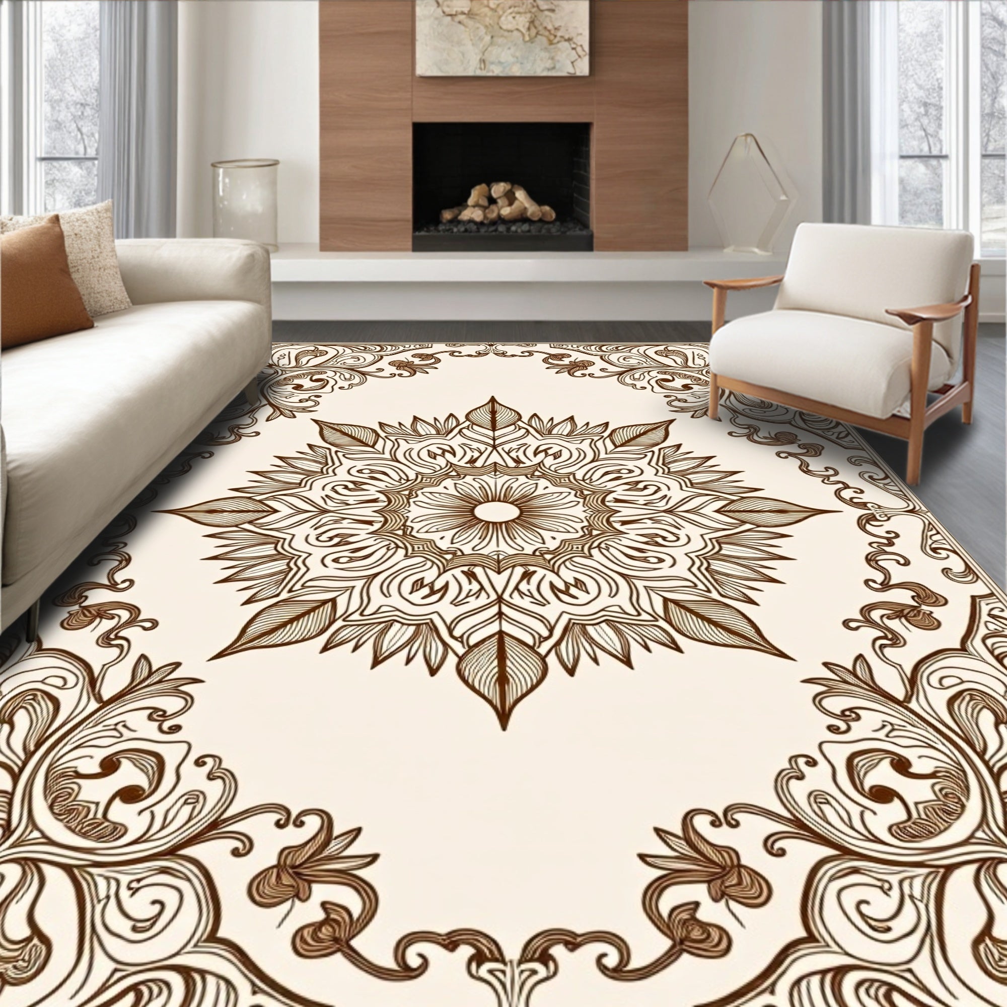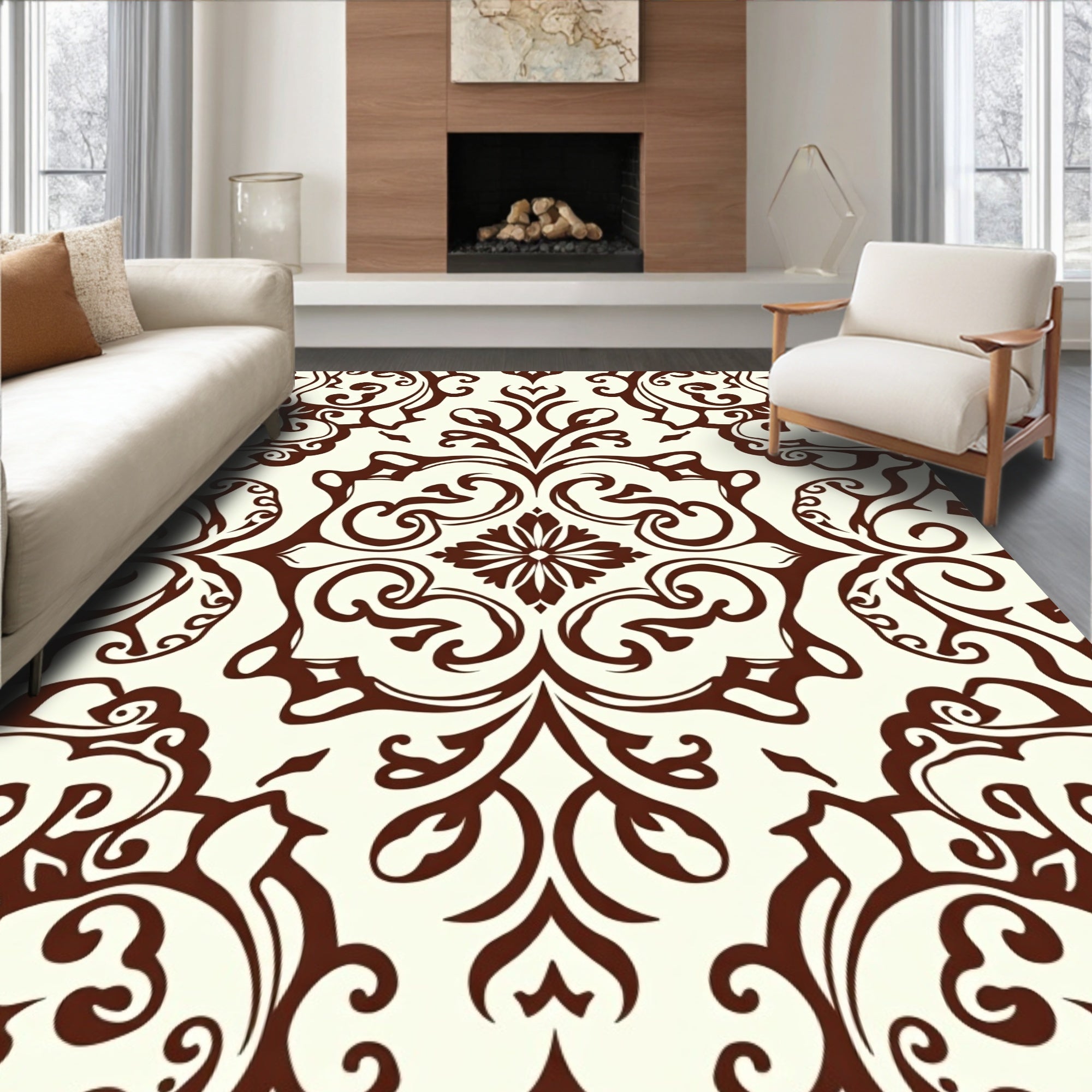Traditional Ornate Scrollwork Symmetrical(Brown)