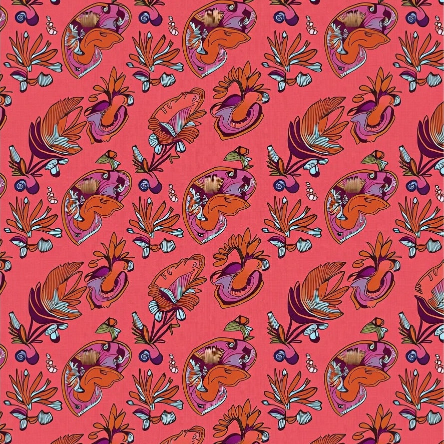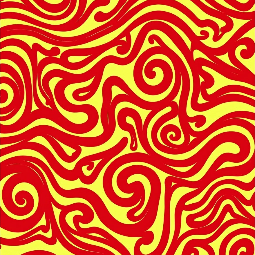 Retro Swirl Mosaic with Dynamic Waves and Bold Floral(Red)