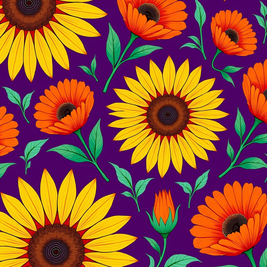 Vintage Sunflower Burst with Autumn Poppy Medallion Floral Design(Purple)