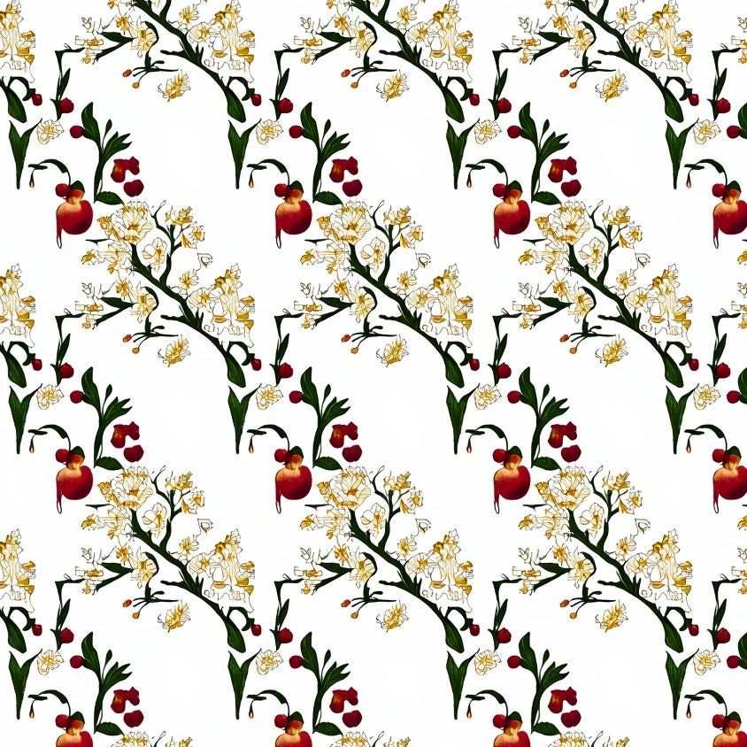 Bountiful Apple Branch Floral Half Moon Accent(Red)