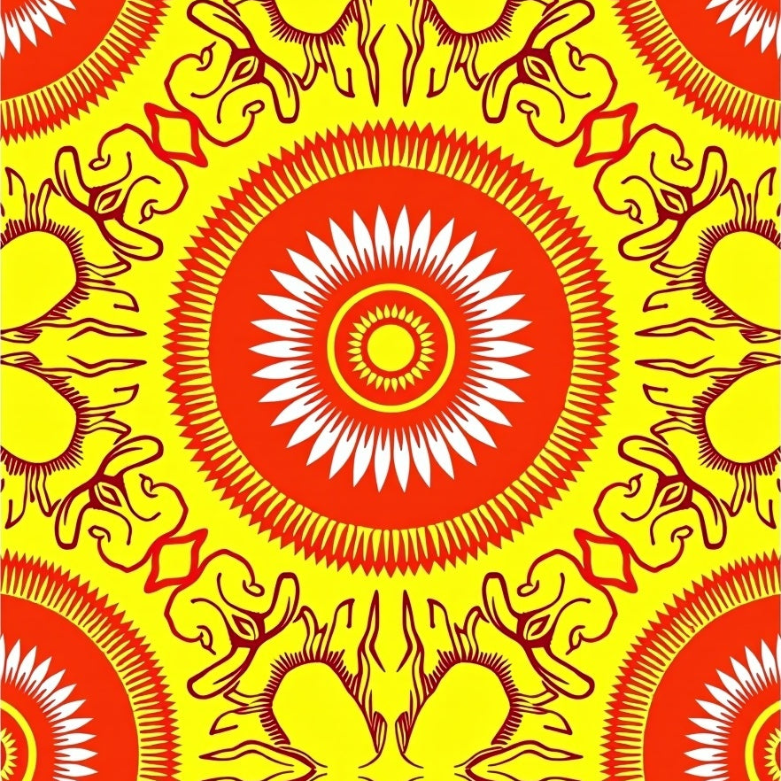 Sunburst Medallion Interlocking Motif with Artistic Floral Detailing(Yellow)