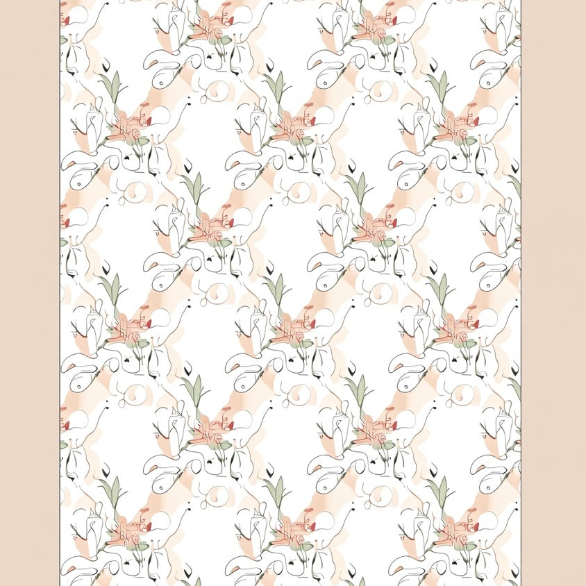 Elegant Contrast Floral with Delicate Swirling Vines and Faded Boho (Ivory)