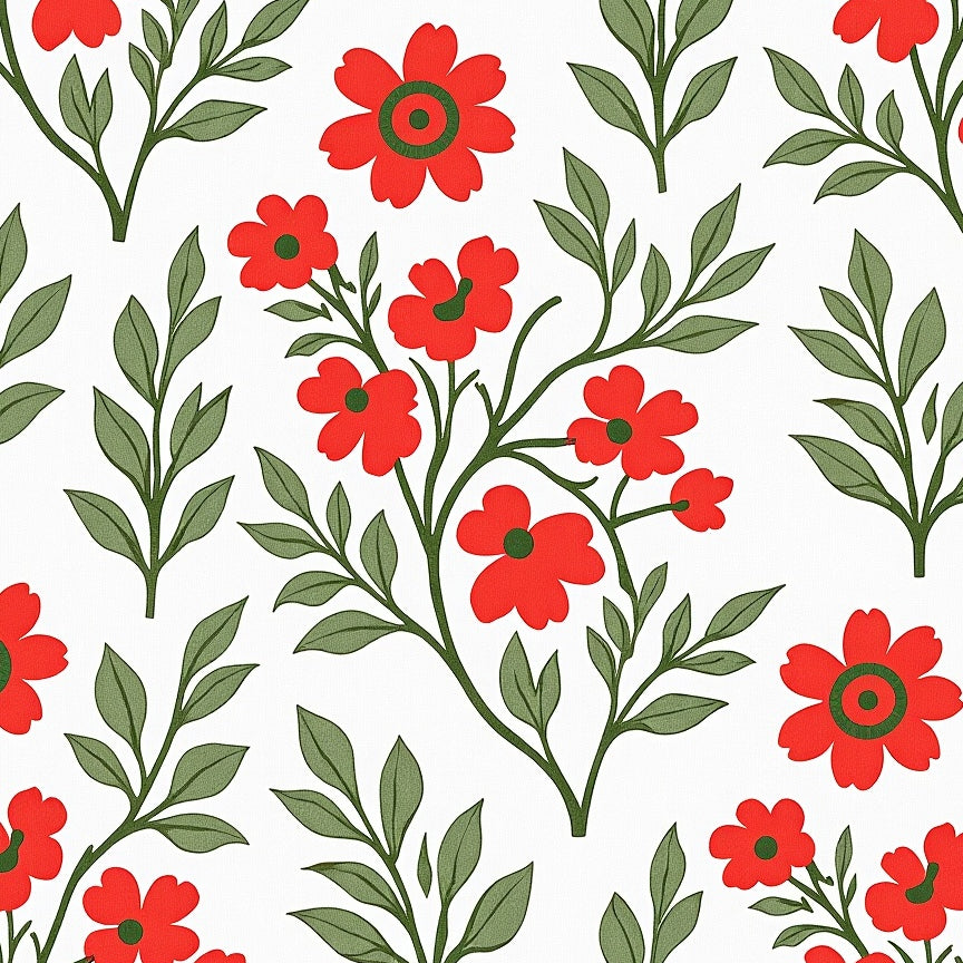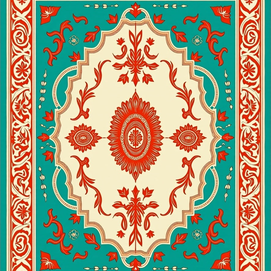 Citrus Burst Medallion Design with Intricate Floral Motifs (Red)
