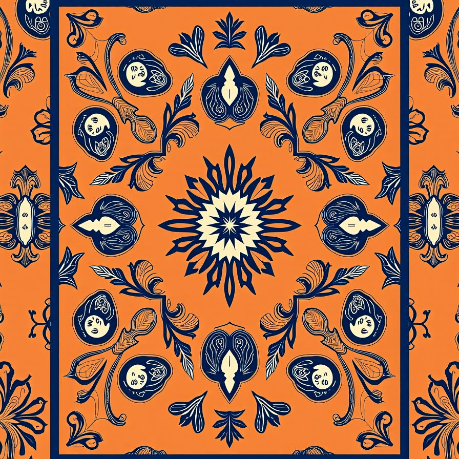 Artisan Boho Overlay with Abstract Floral and Interlocking Starbursts (Orange)