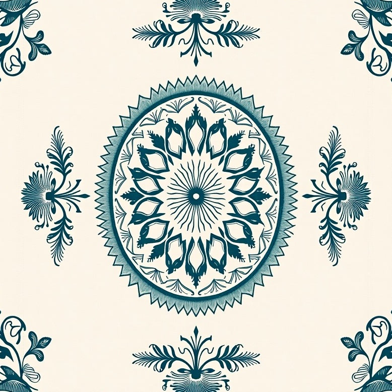 Interlocking Motifs with Subtle Floral Accents (Blue)