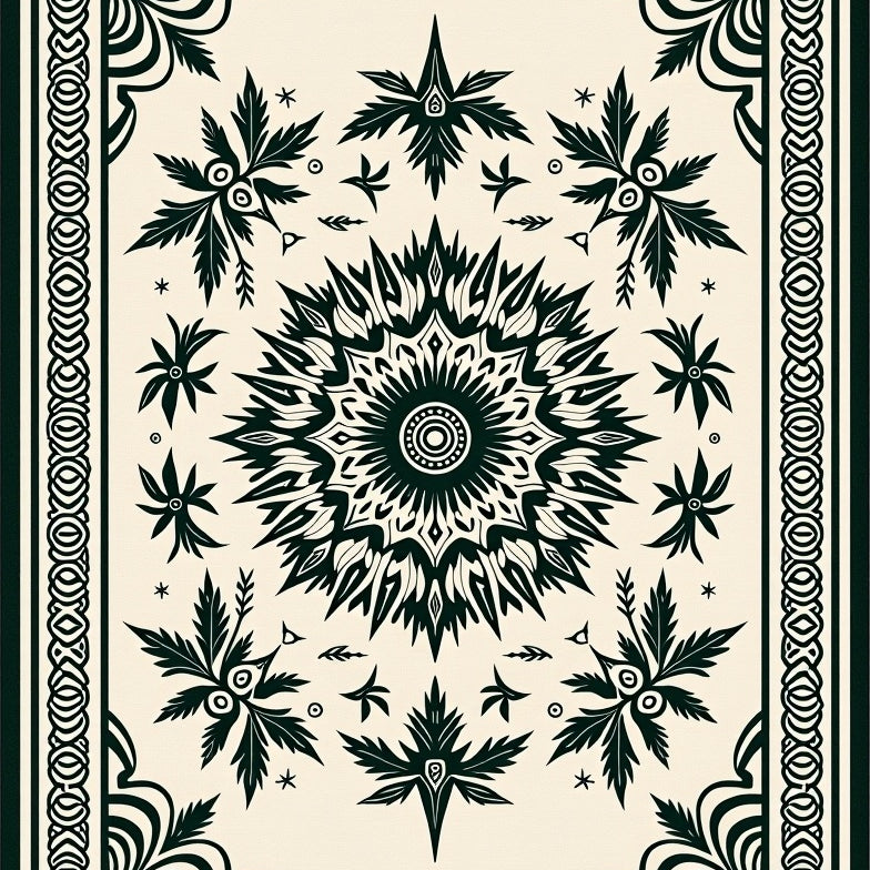 Vintage Botanical Artistry Floral Medallion Tapestry (Green)