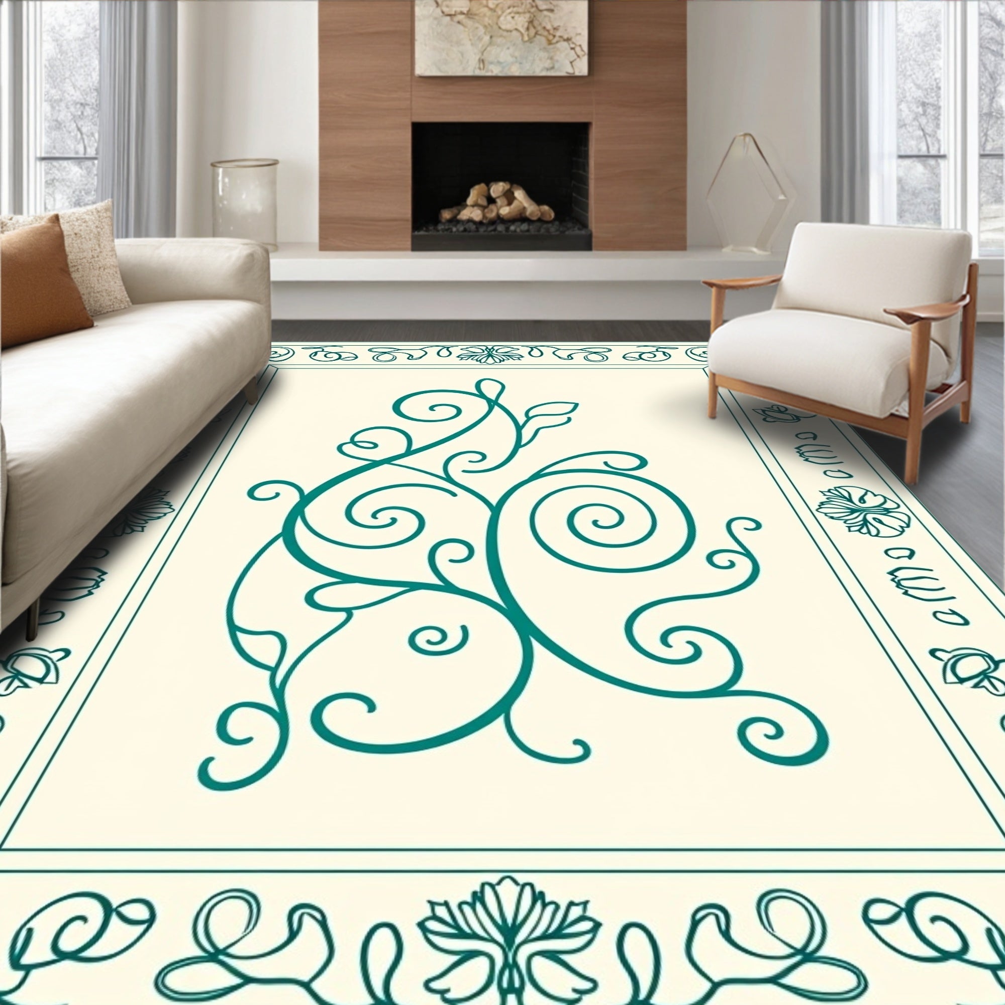 Elegant Floral Scroll Tapestry Featuring Swirl Leaf Embellishment (Ivory)