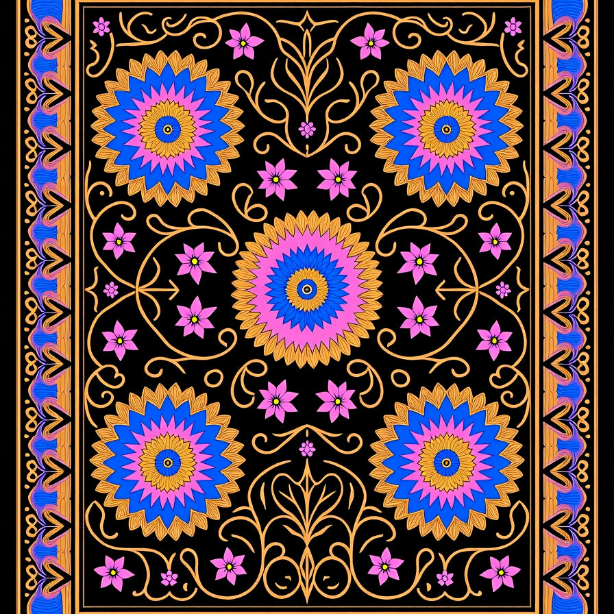 Vintage Floral Heritage Tapestry Medallion Elegant Artisan (Black)