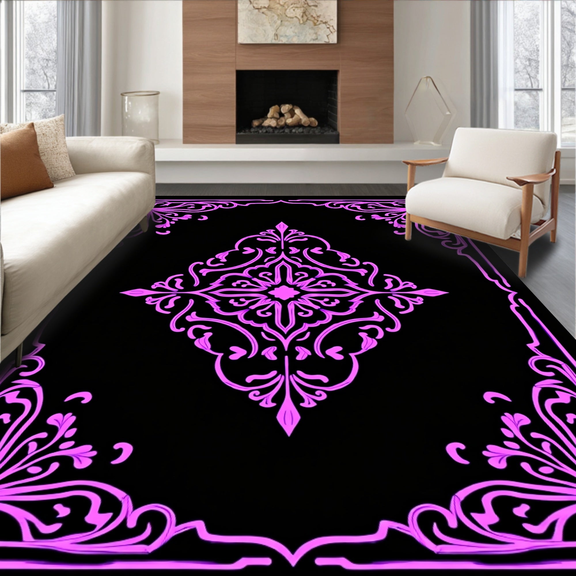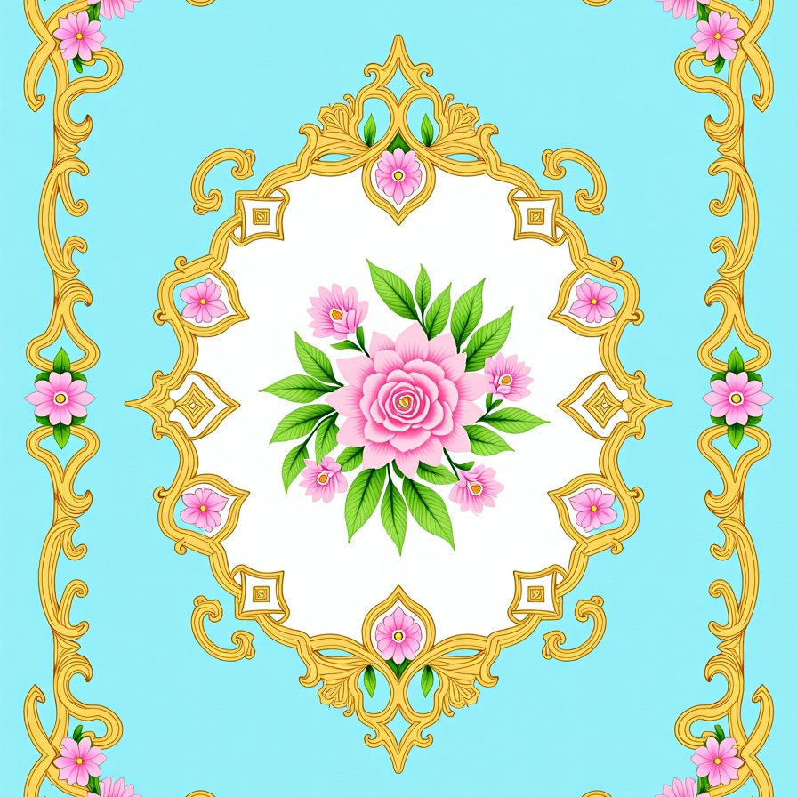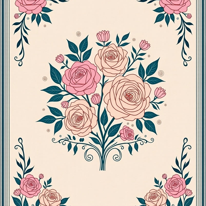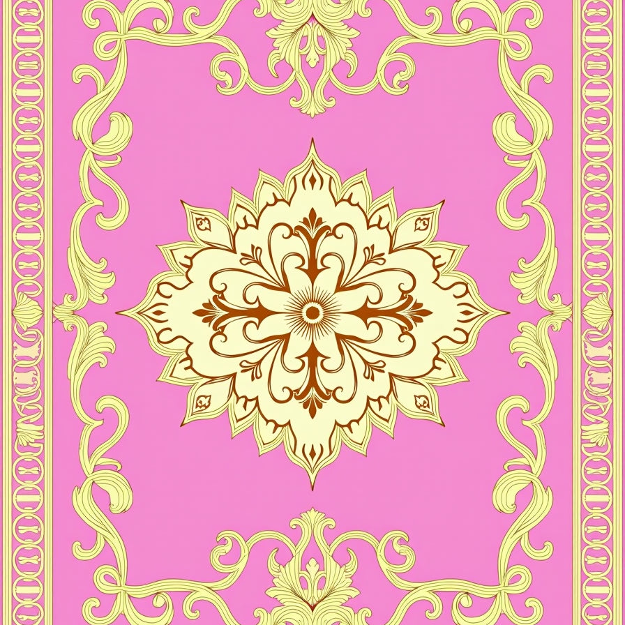 Art Nouveau Scrollwork with Floral Medallion Arrangement (Pink)