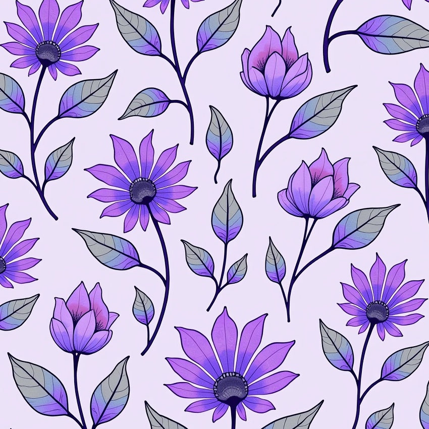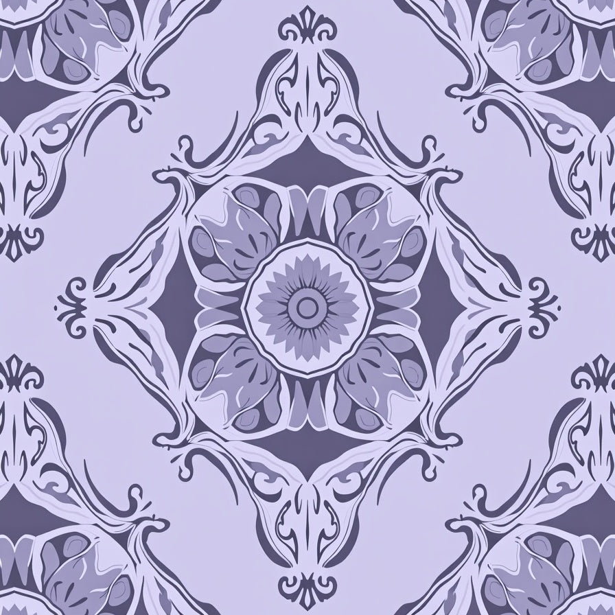 Lavender Hues with Interlocking Floral Medallions and Curves (Purple)