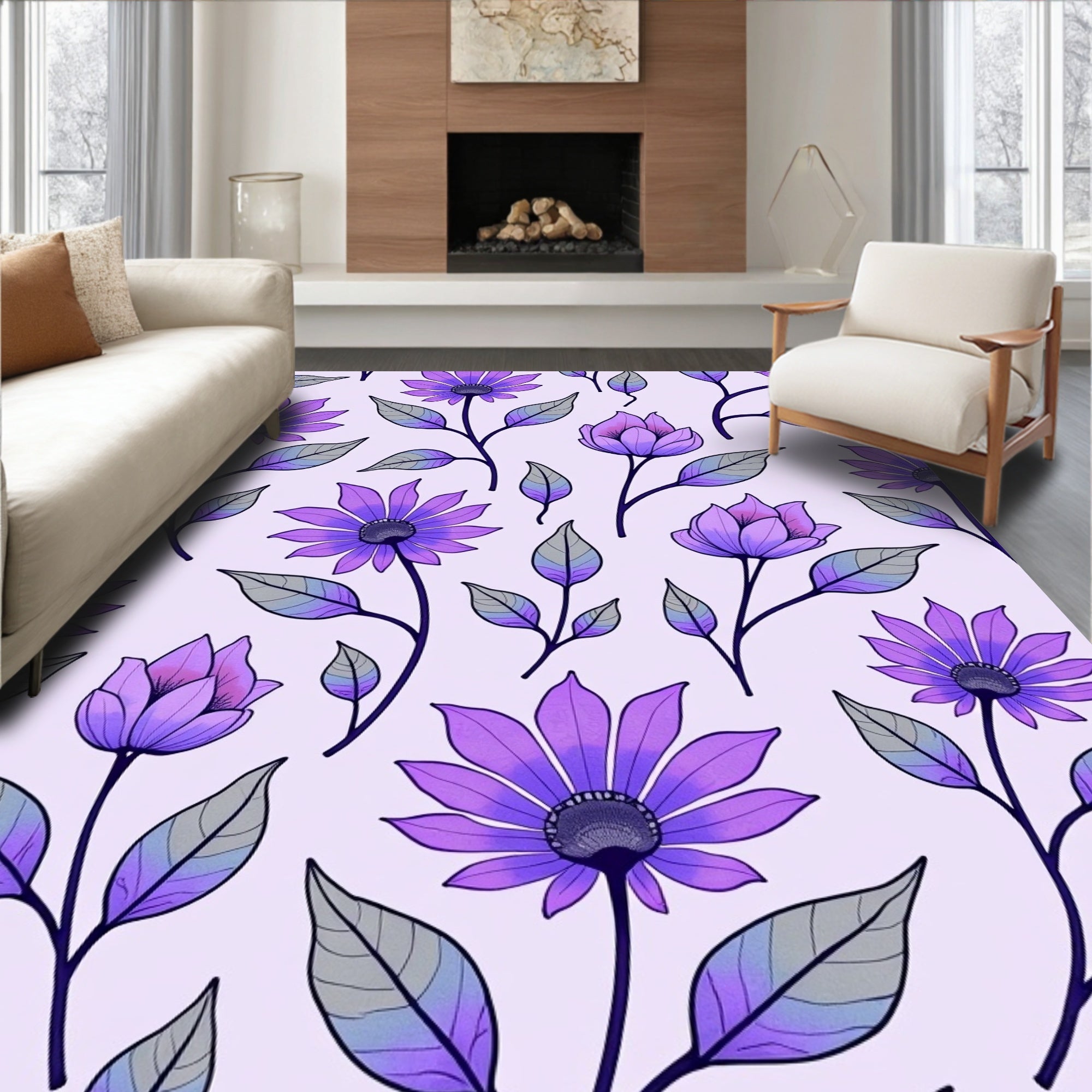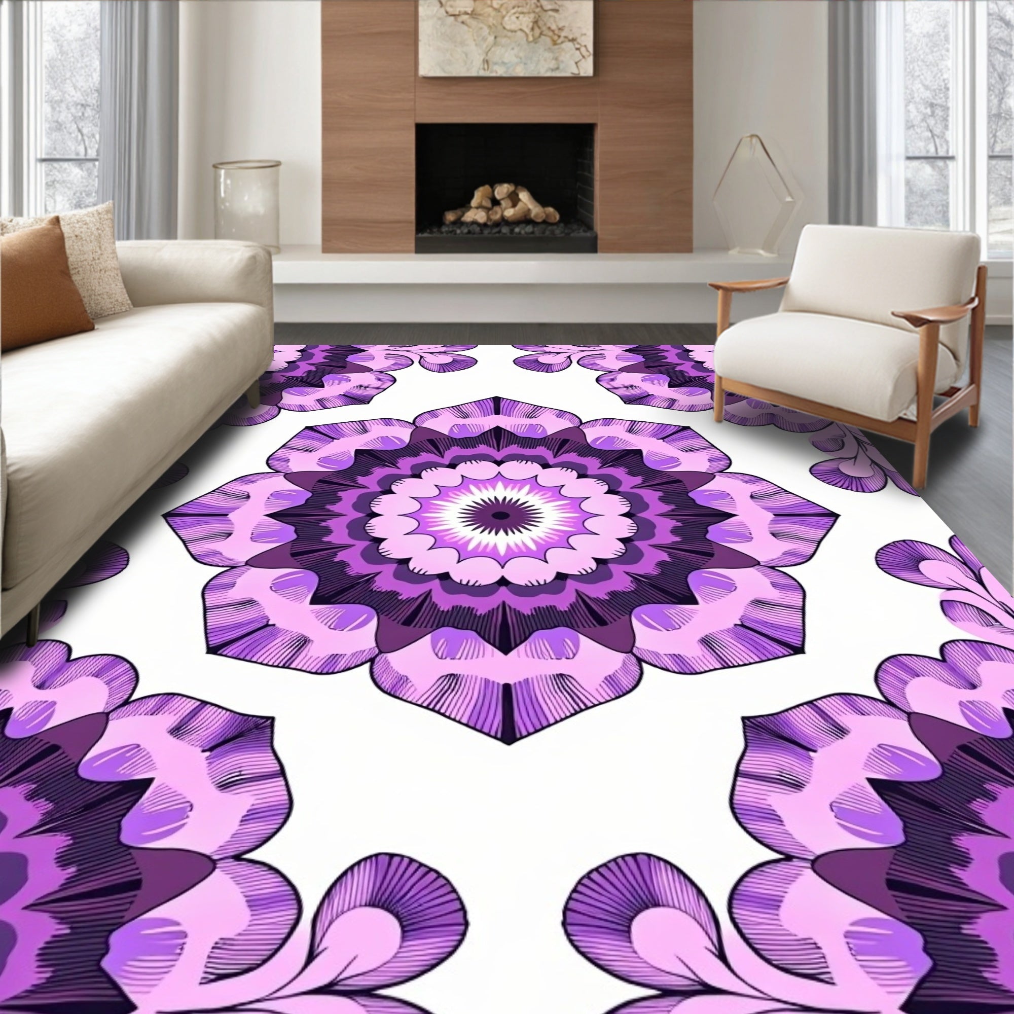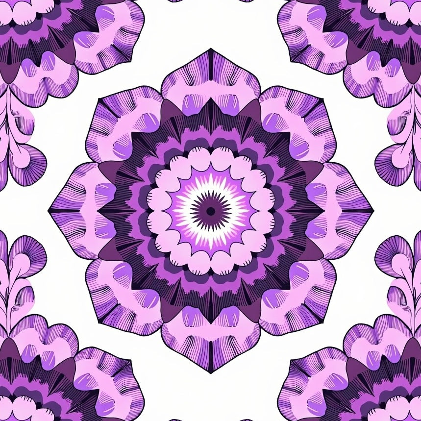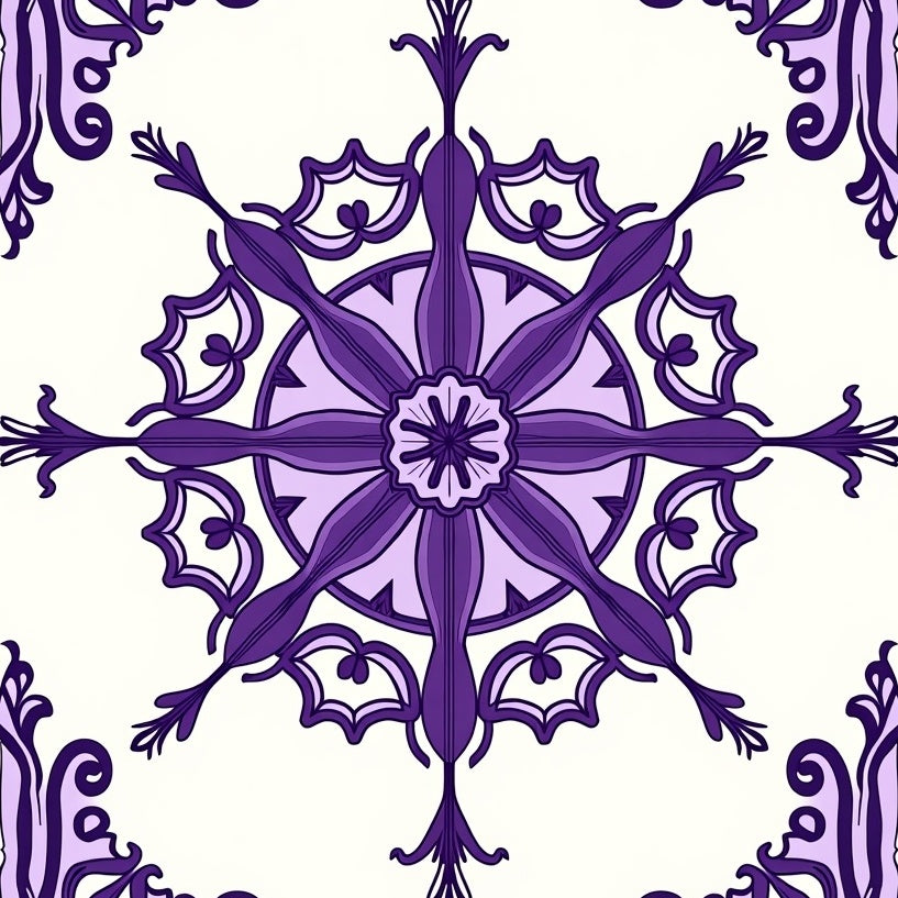 Whimsical Floral Medallion with Vintage Lattice Motifs (Purple)