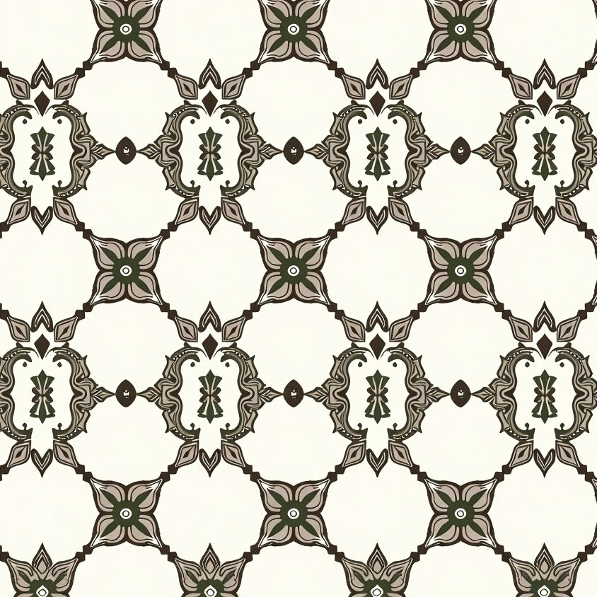 Modern Interlocking Lattice with Vintage Floral Filigree Overlay (Beige)