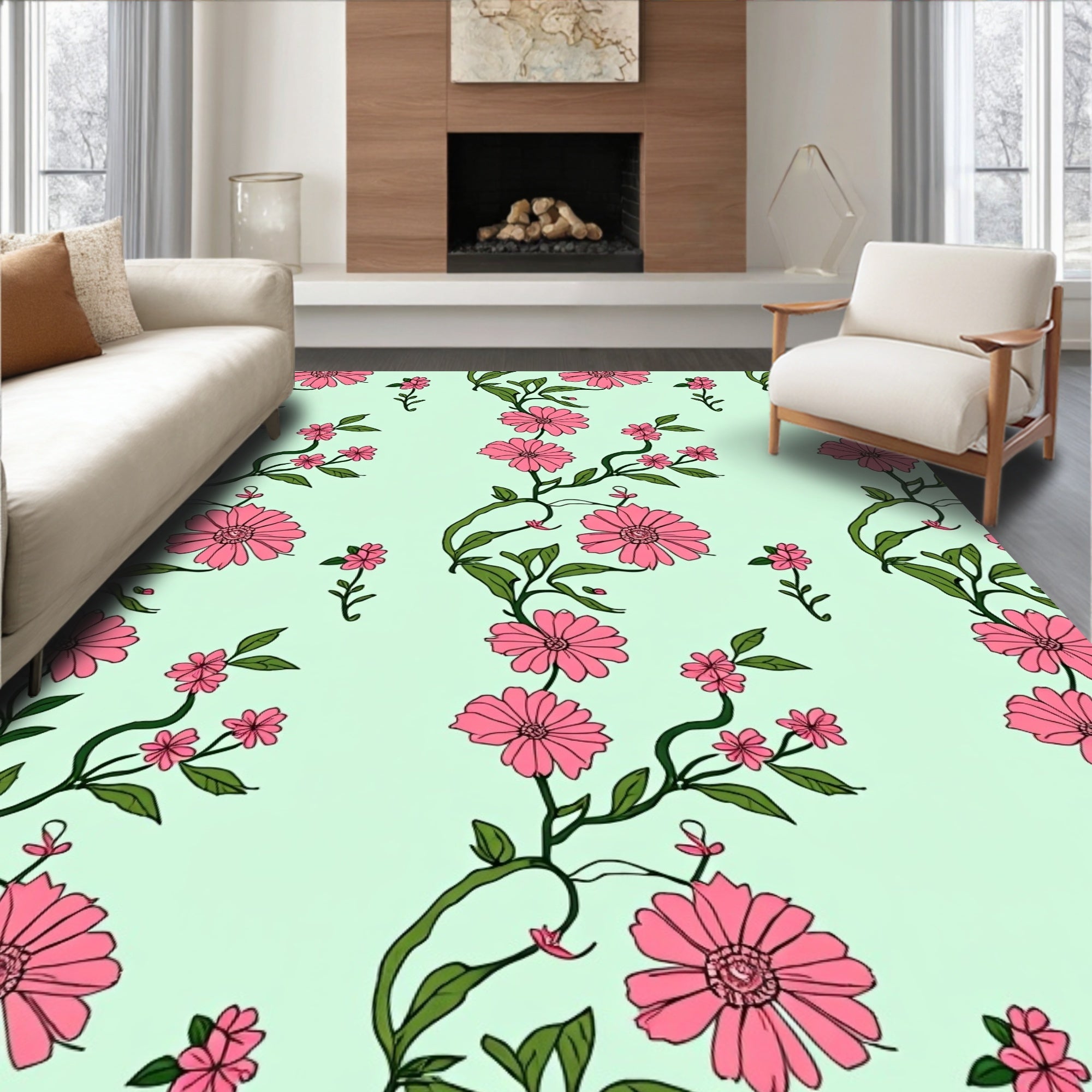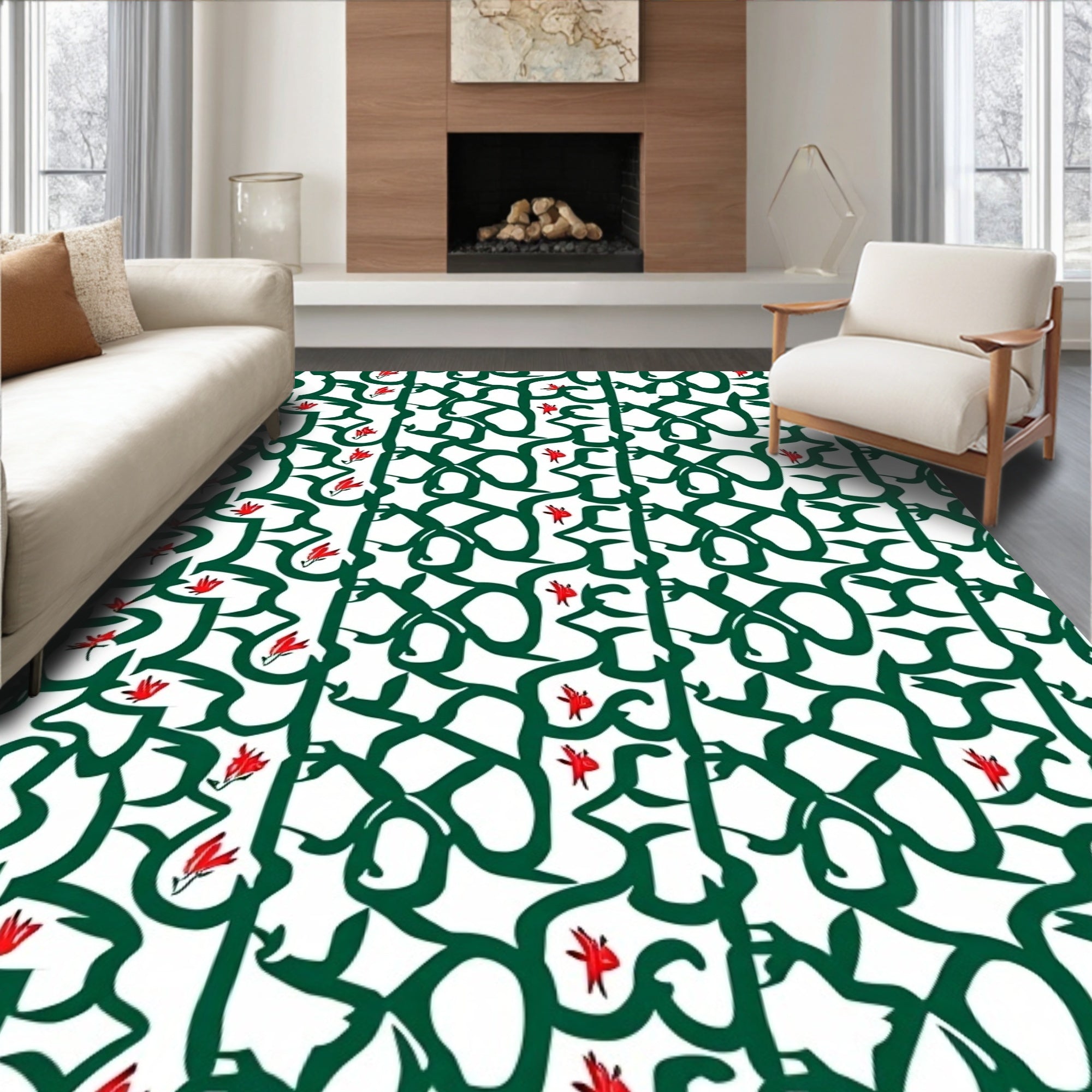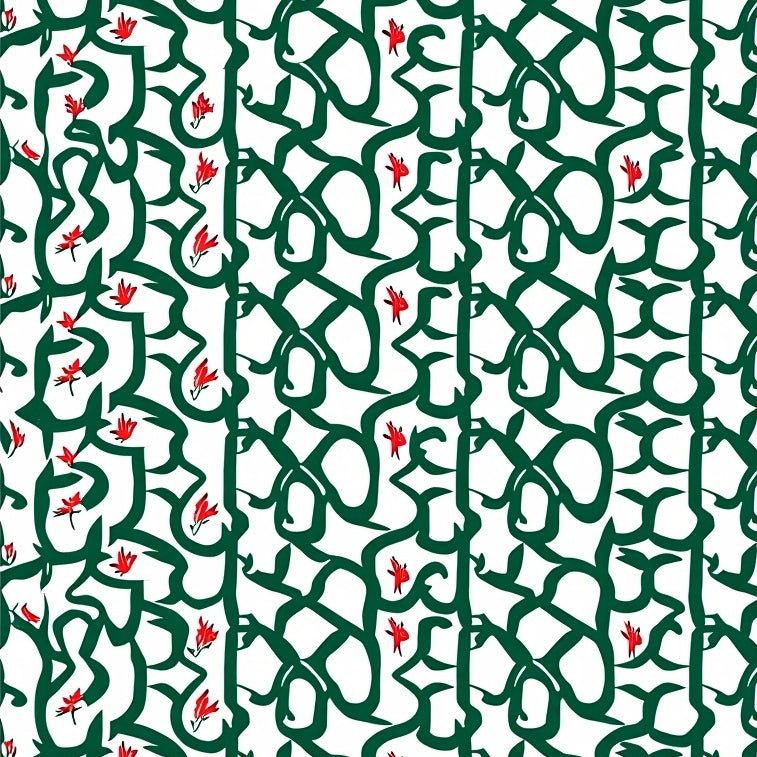 Modern Interlocking Lattice with Stylized Florals (Green)