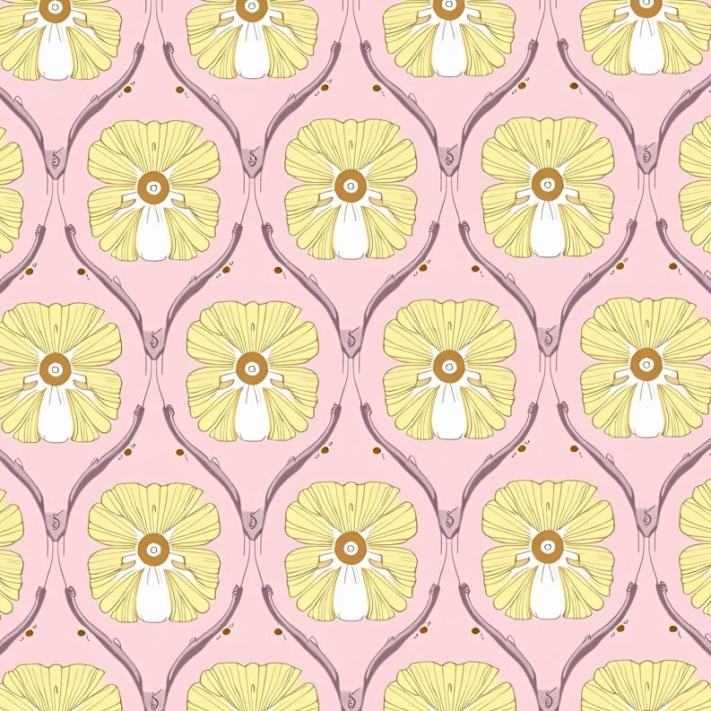 Abstract Floral Medallions with Interlocking Petal Designs (Pink)