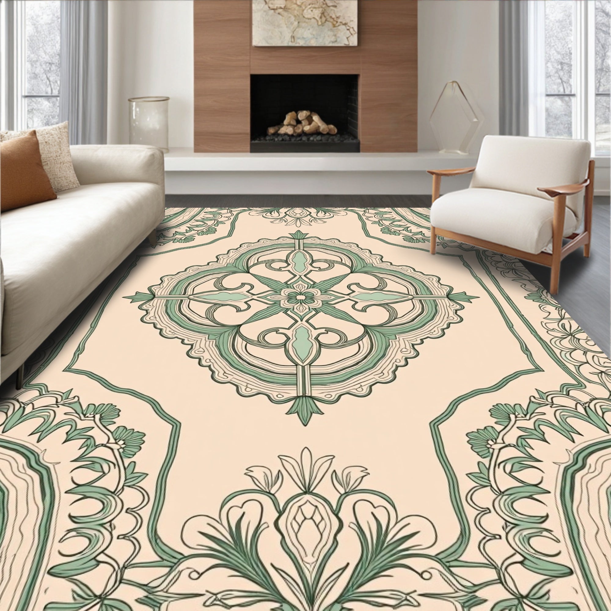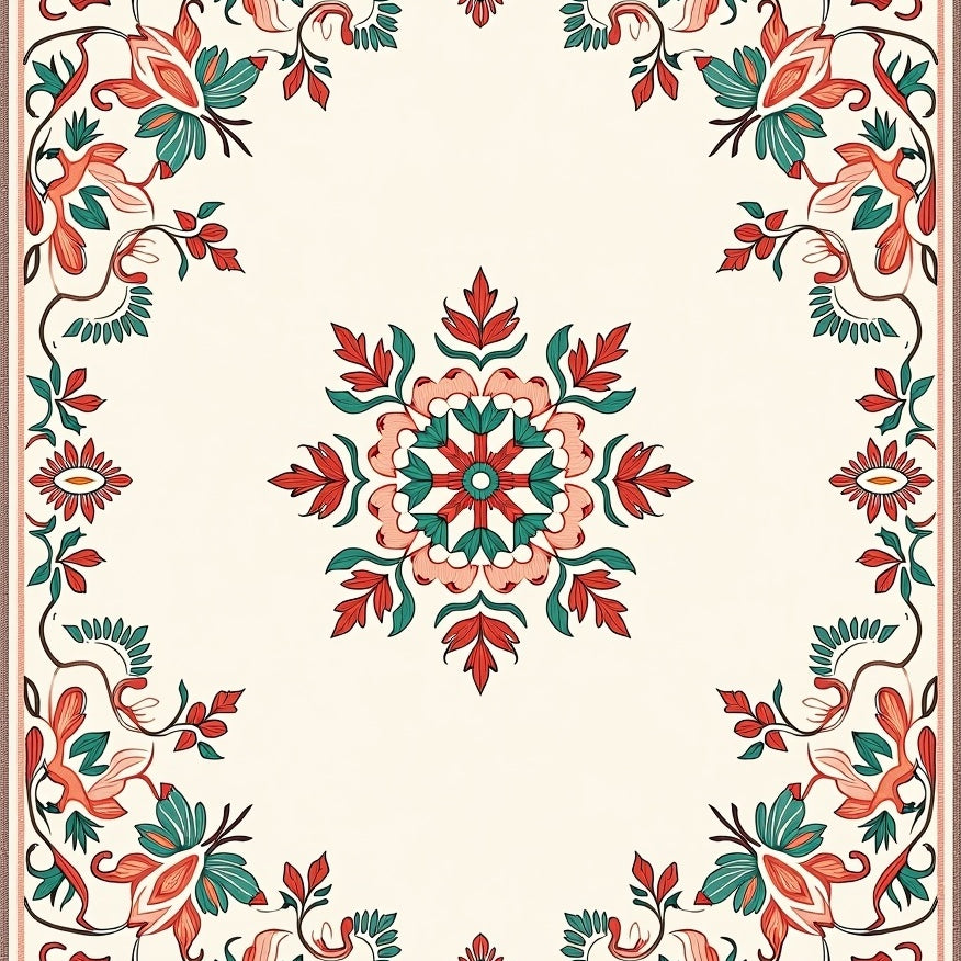 Vintage Floral Medallion Boho Design (Beige)
