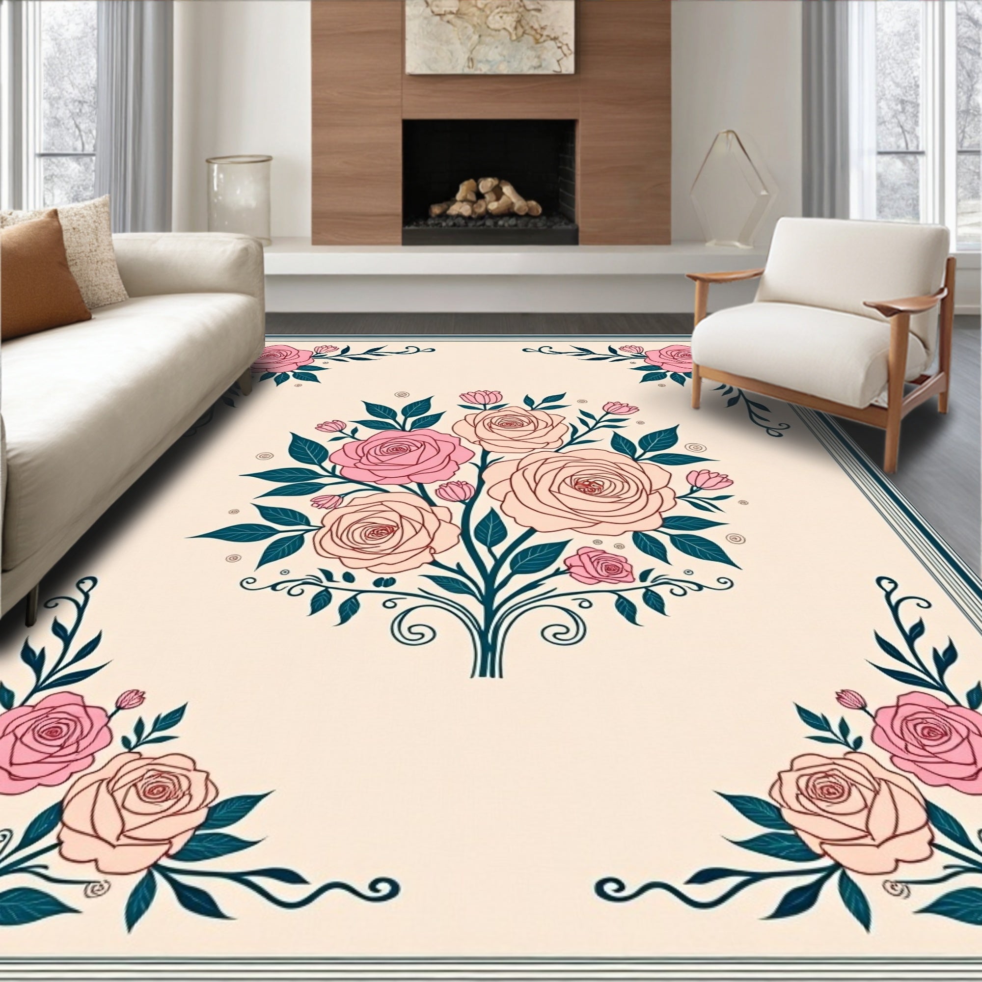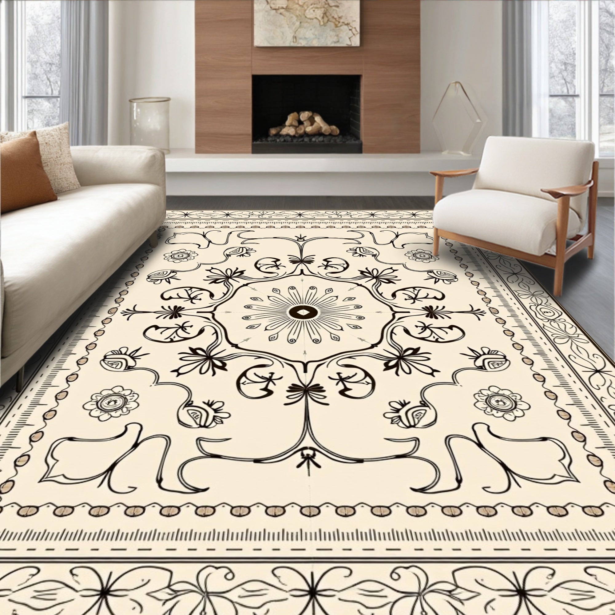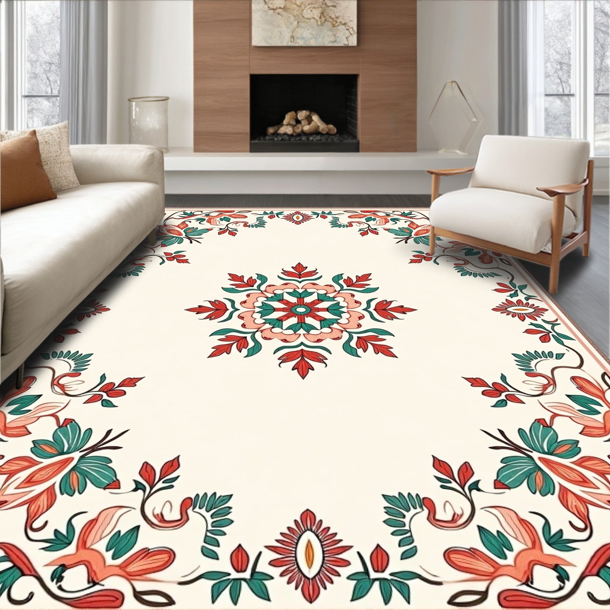Vintage Floral Medallion Ornate Decorative Artistic Traditional (Ivory)