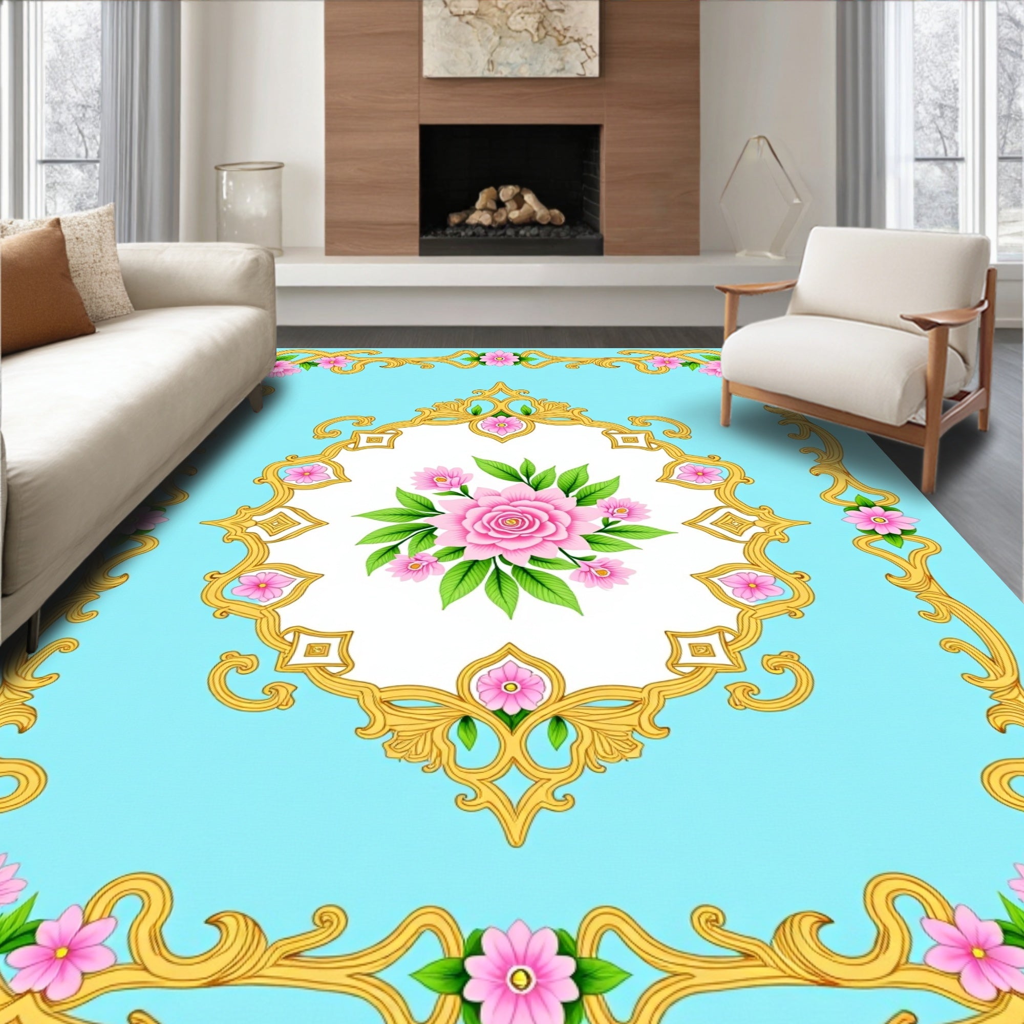 Vintage Medallion Interlocking Floral Motif Design (Blue)