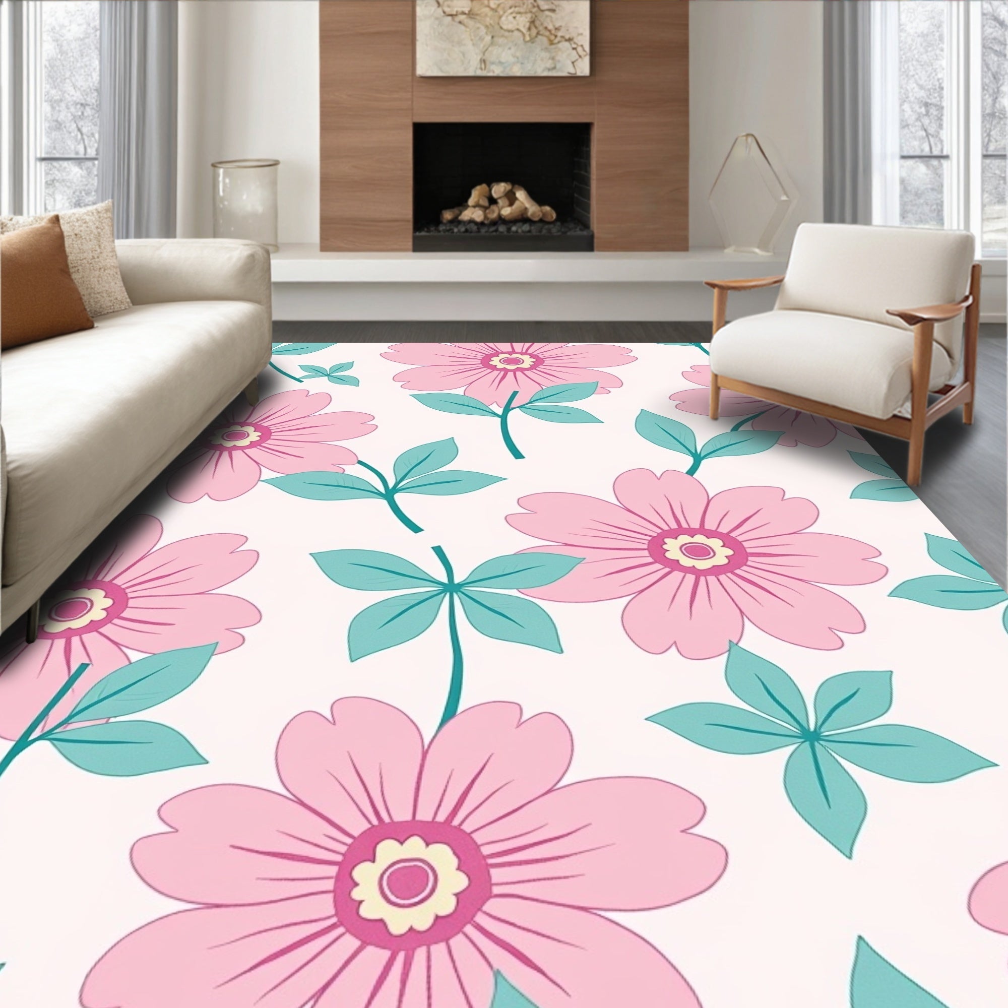 Ethereal Bloom Abstract Floral Medley Contemporary Pastel Motif (Pink)