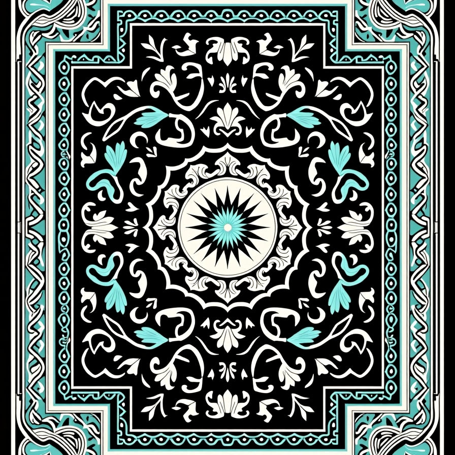 Floral Medallion Scrollwork Motif with Intricate Baroque Accents (Black)