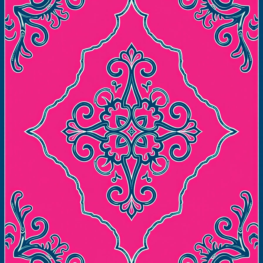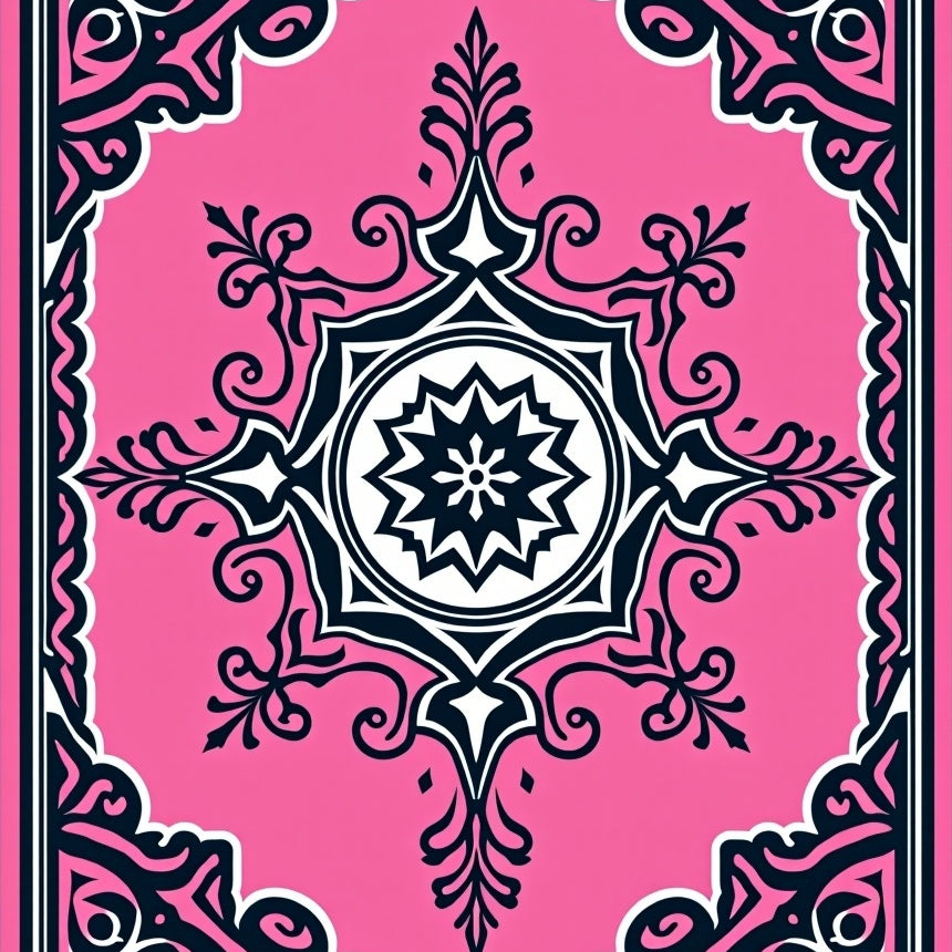 Classic Medallion Featuring Ornate Floral Scrolls and Interlocking Motifs (Pink)