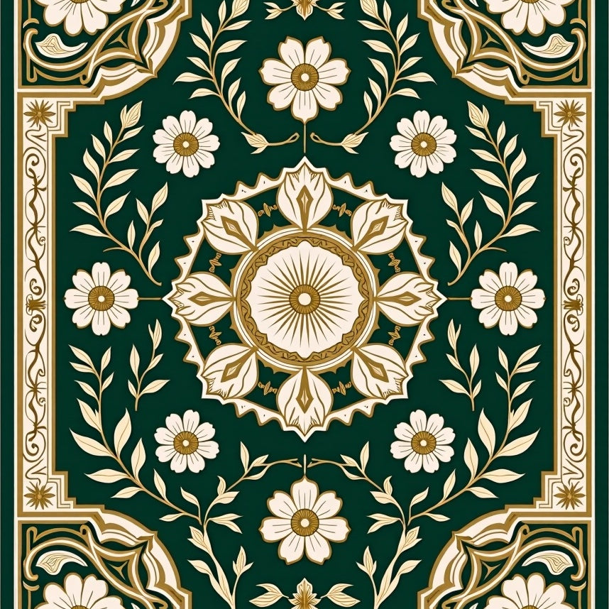 Vintage Floral Medallion with Intricate Lotus Embellishments (Green)