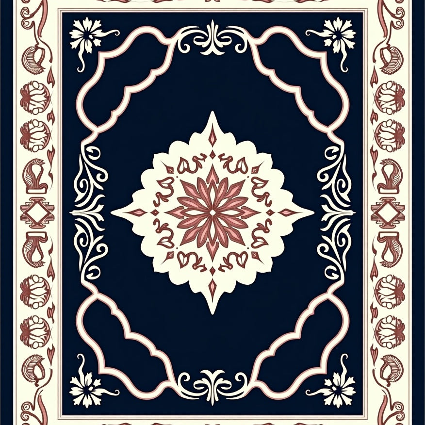 Elegant Floral Medallion Featuring Intricate Lotus and Vine Motifs (Black)