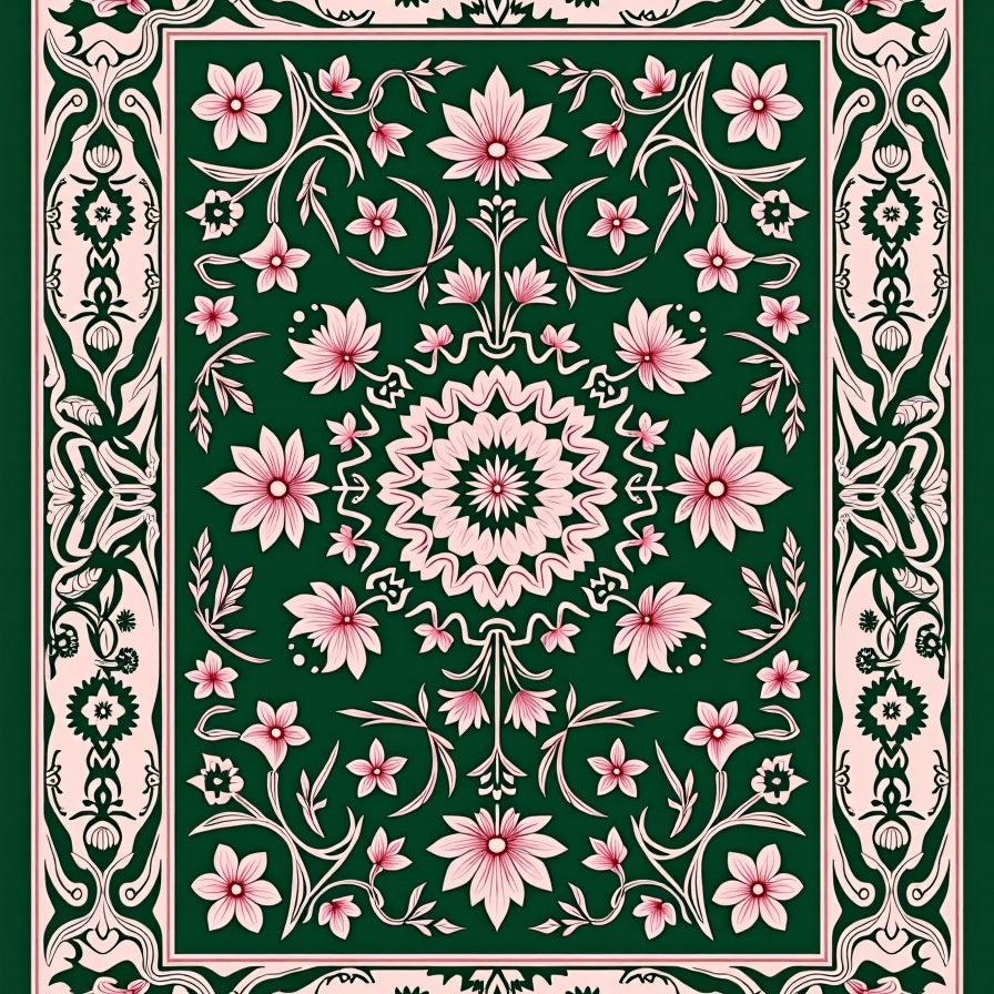 Blooming Botanical Medallion Interwoven Floral Vintage Design (Pink)