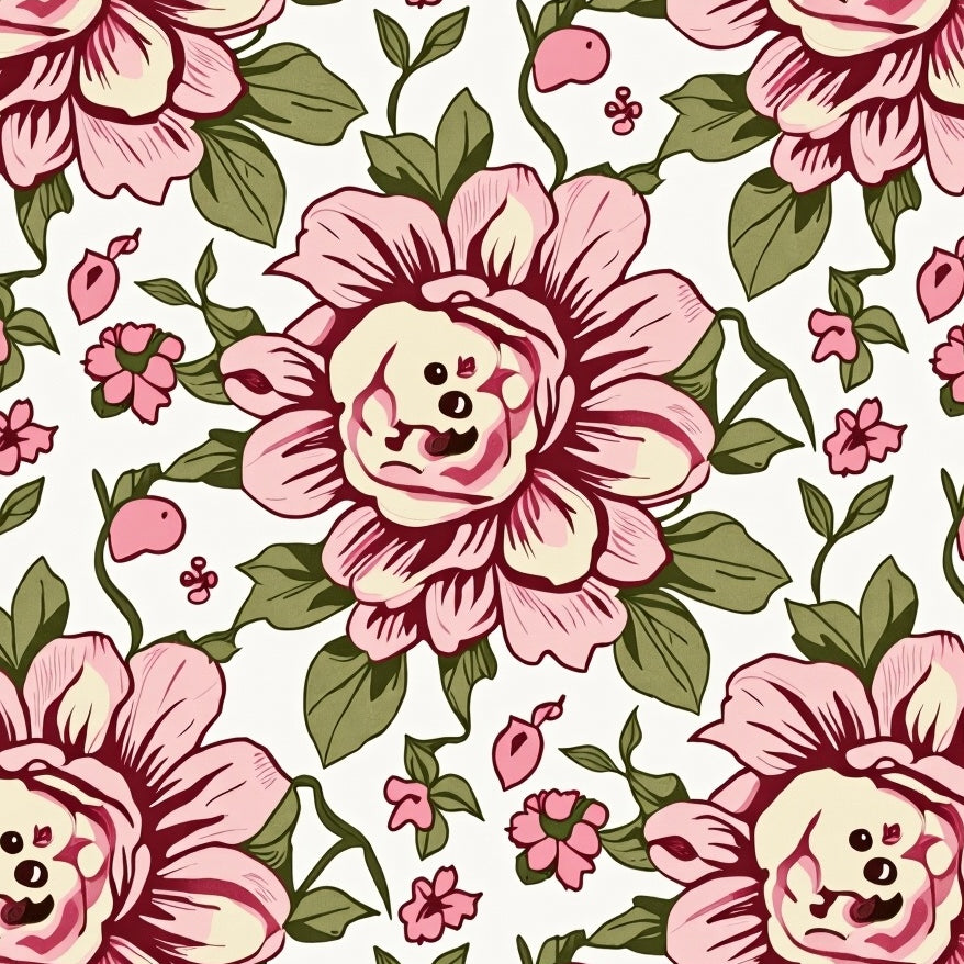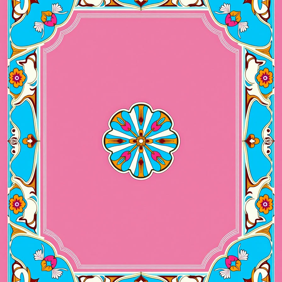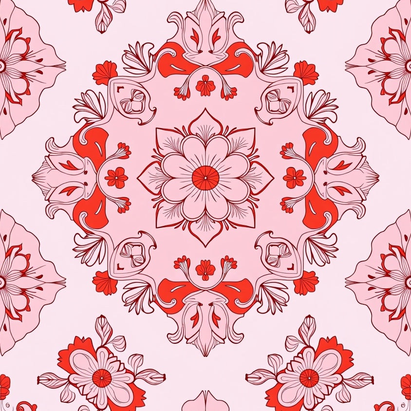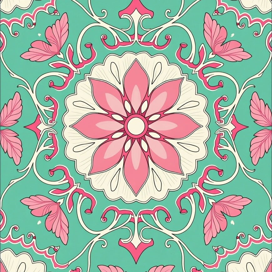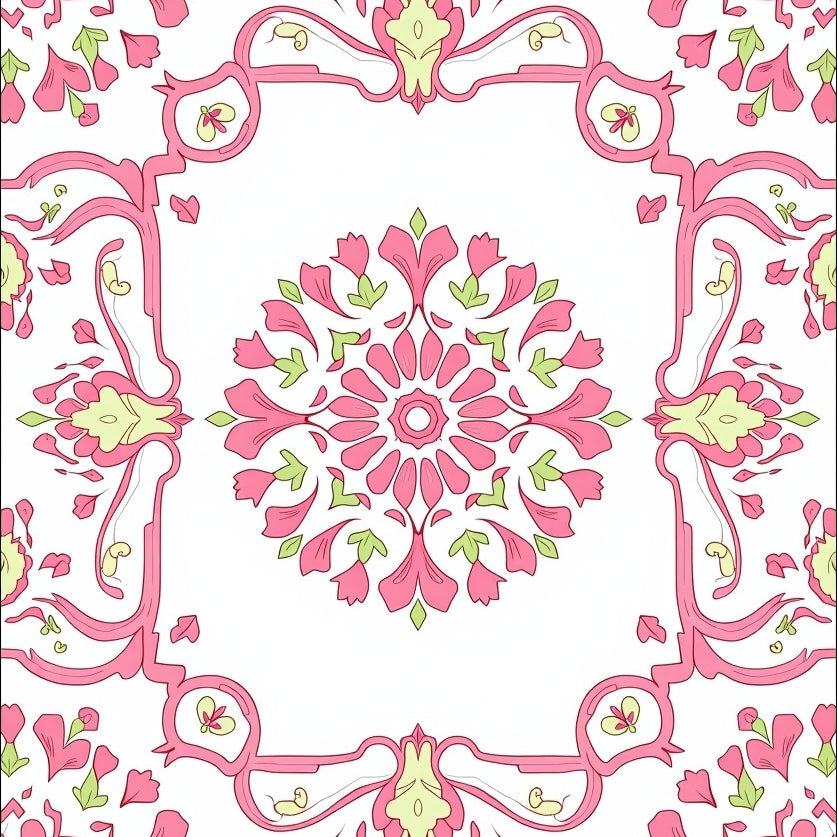 Vintage Floral Medallion with Delicate Petal Motifs and Curved Vines (Pink)