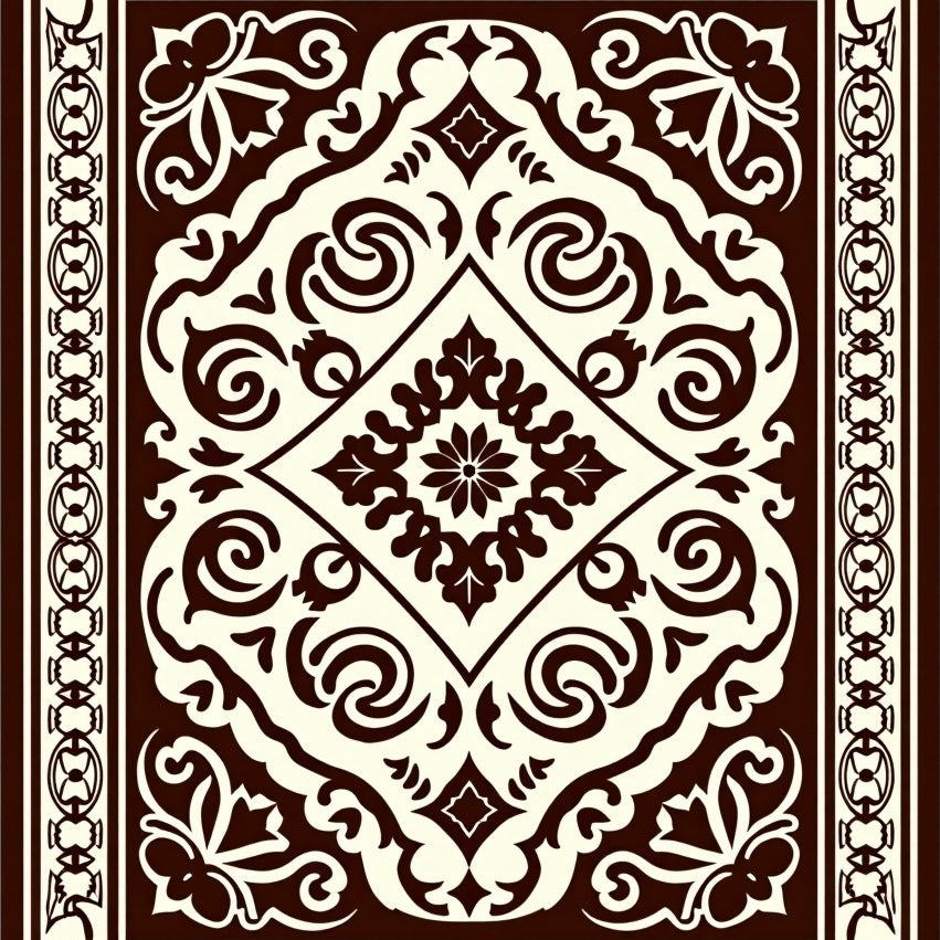 Ornate Scrollwork Floral Embellished Mosaic Grandeur (Brown)