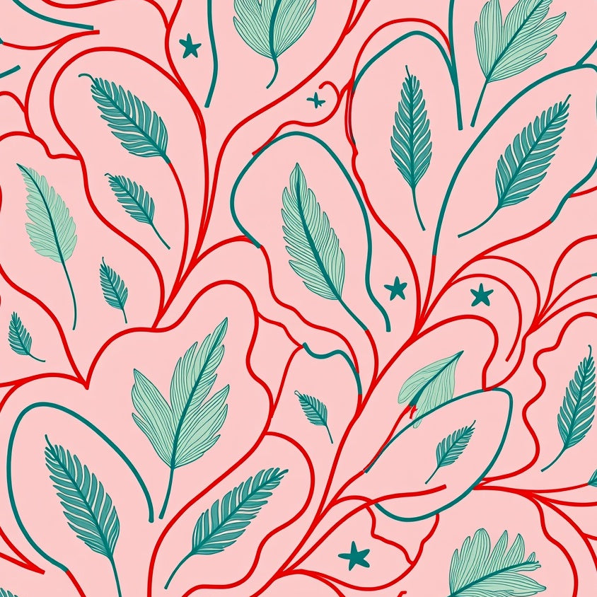 Whimsical Floral Cascade with Flowing Petal Trails and Stylized Leaf (Pink)