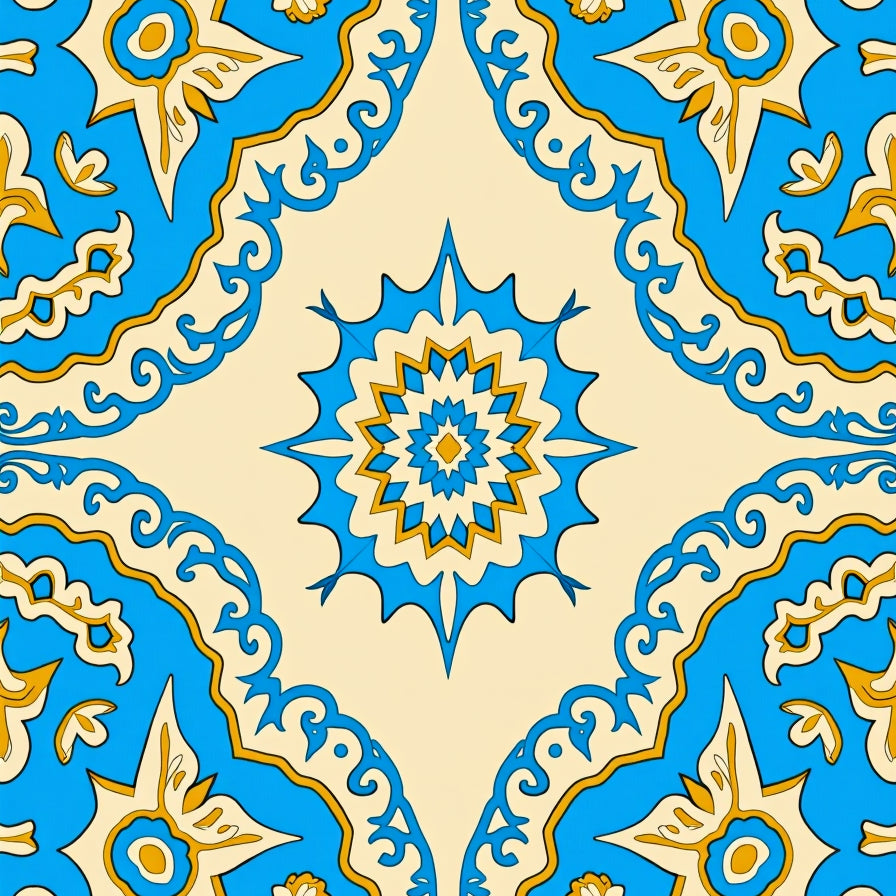 Traditional Lattice Design with Intricate Interwoven Floral and Leaf (Blue)