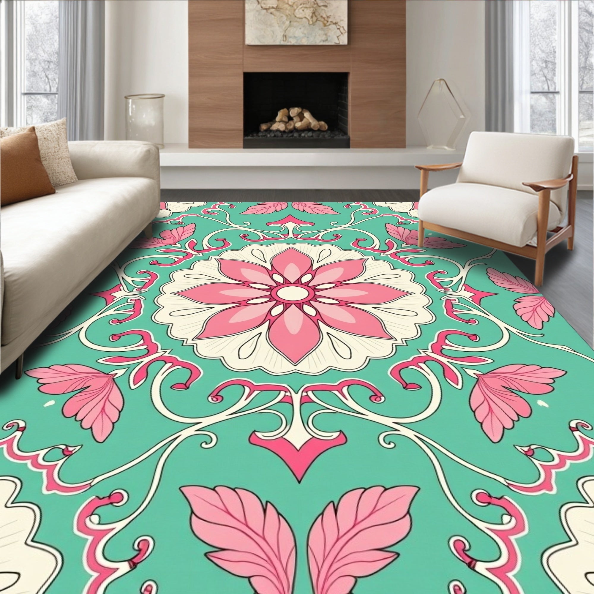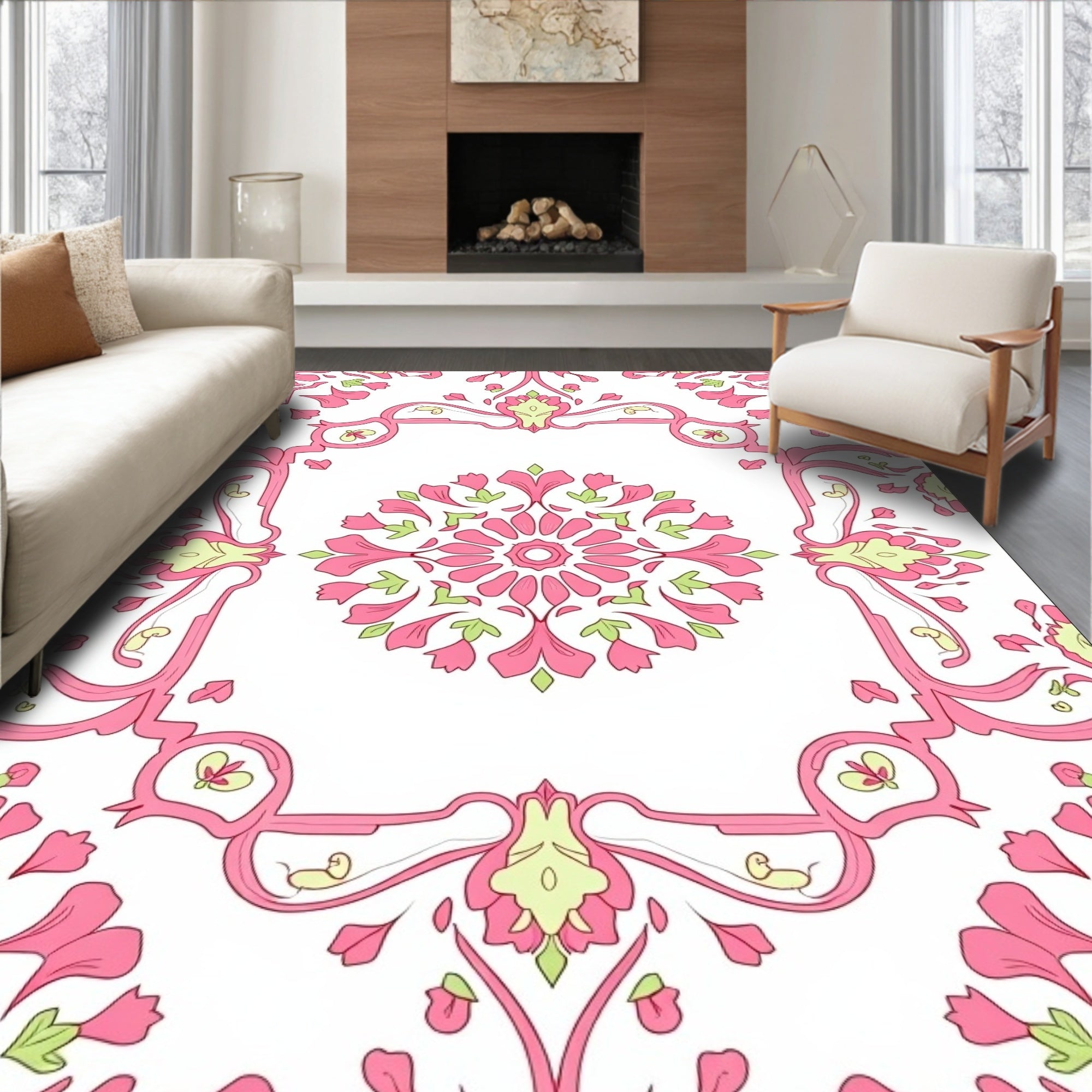 Vintage Floral Medallion Tapestry Elegant Heritage Decorative Accent (Pink)
