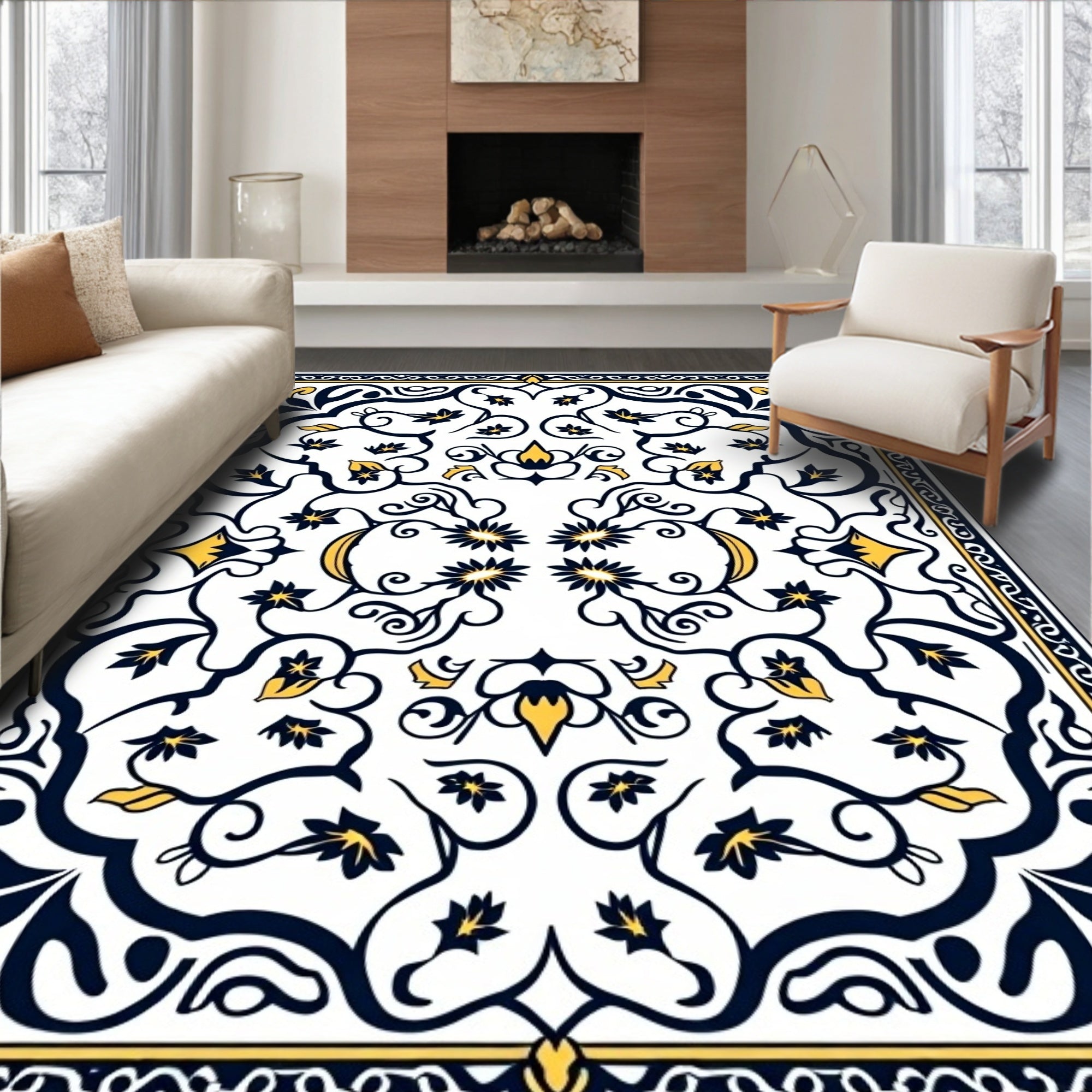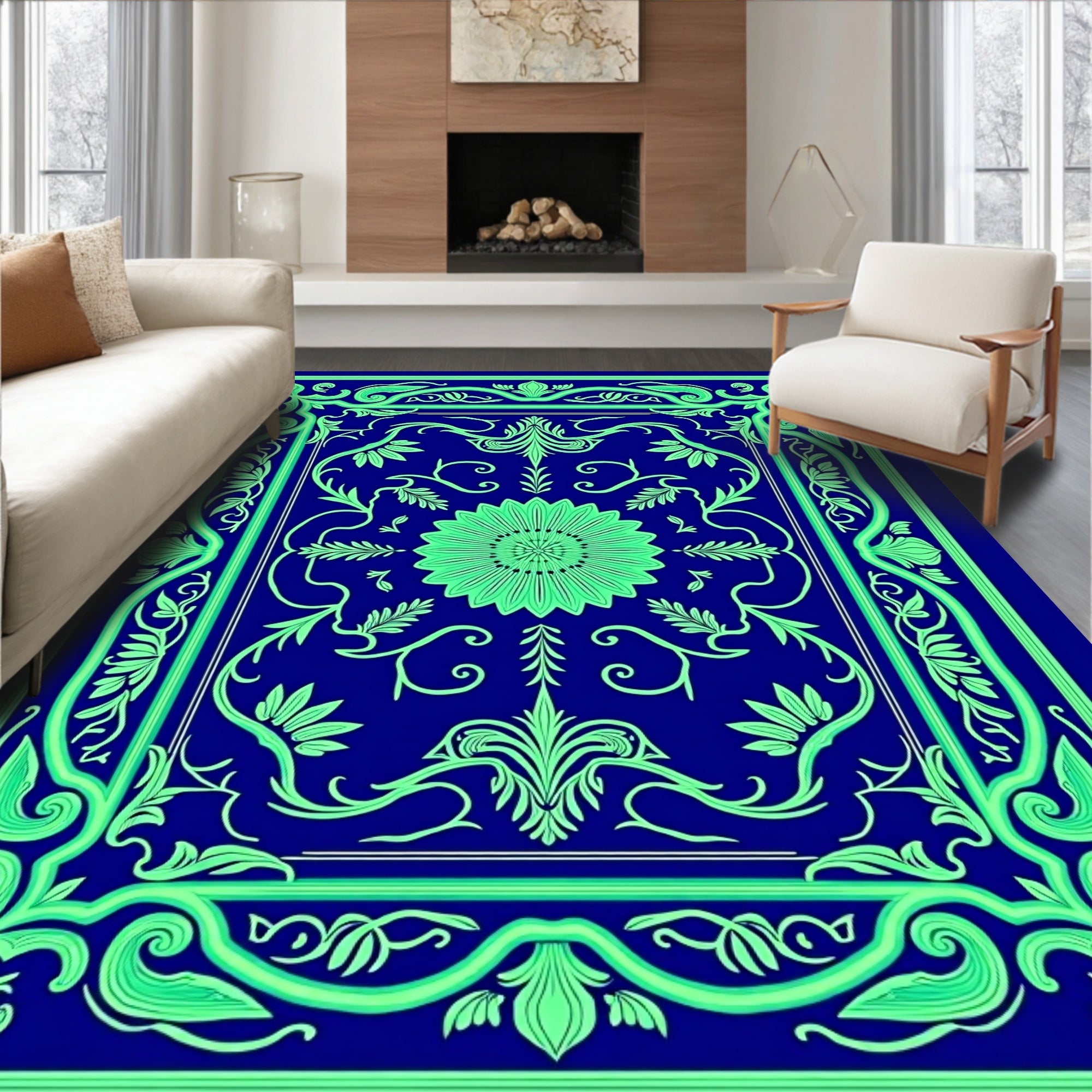 Elegant Floral Medallion Tapestry With Vintage Artistic Swirl Design (Blue)