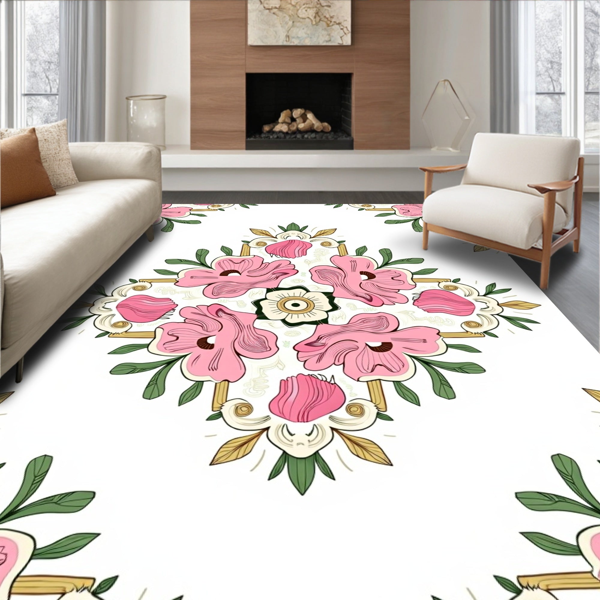 Floral Medallion Tapestry with Petal Motifs and Intricate Curves (Pink)