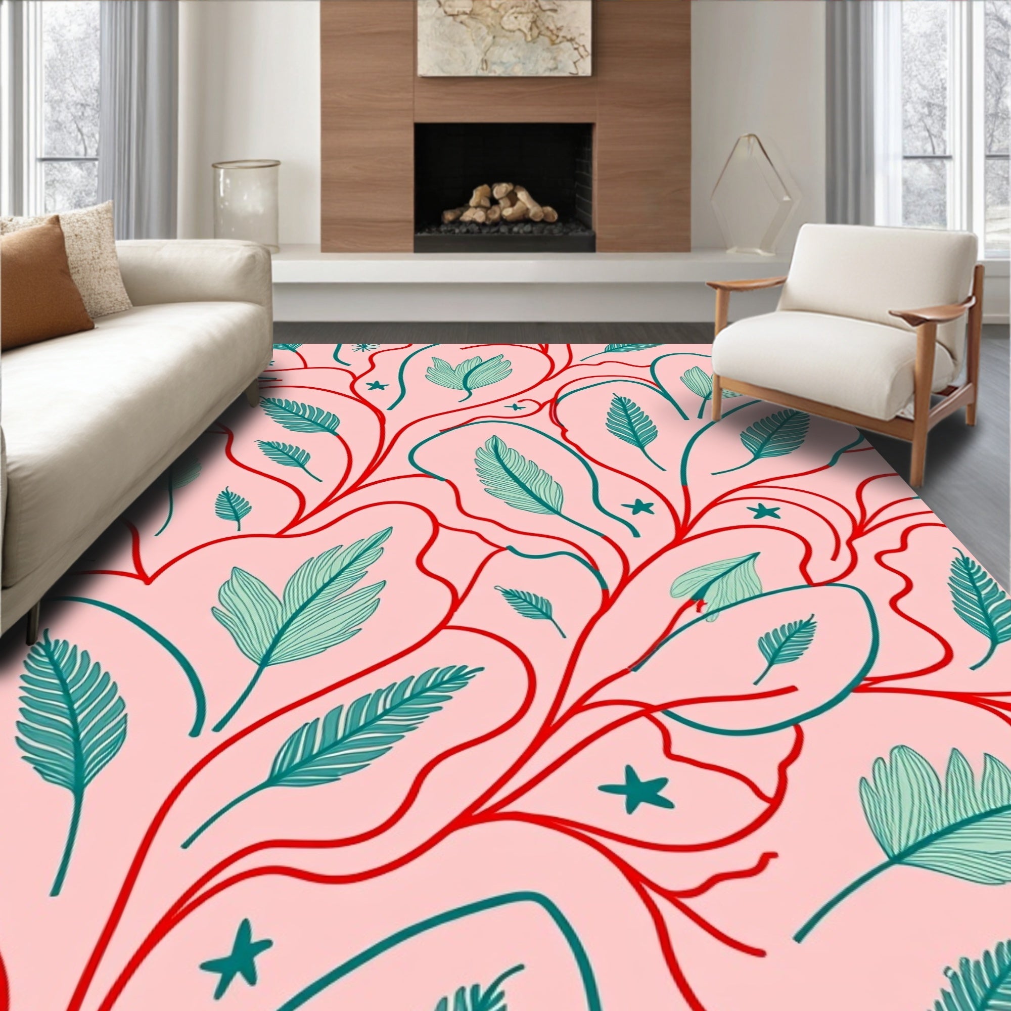 Boho Floral Tapestry Design Indoor with Faded Botanical Print (Pink)