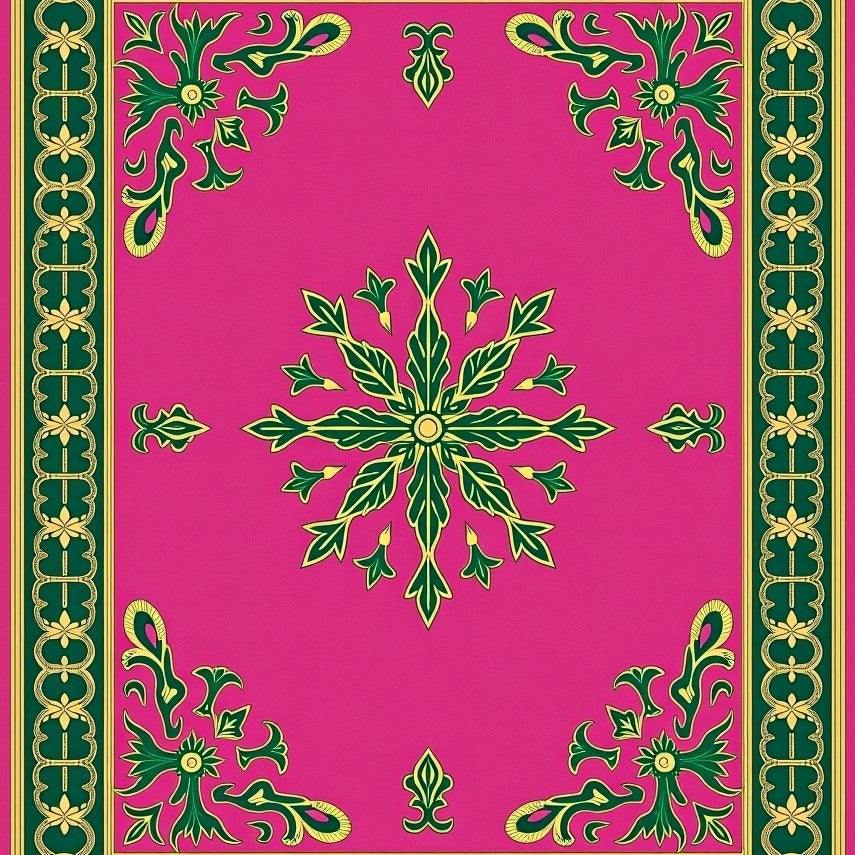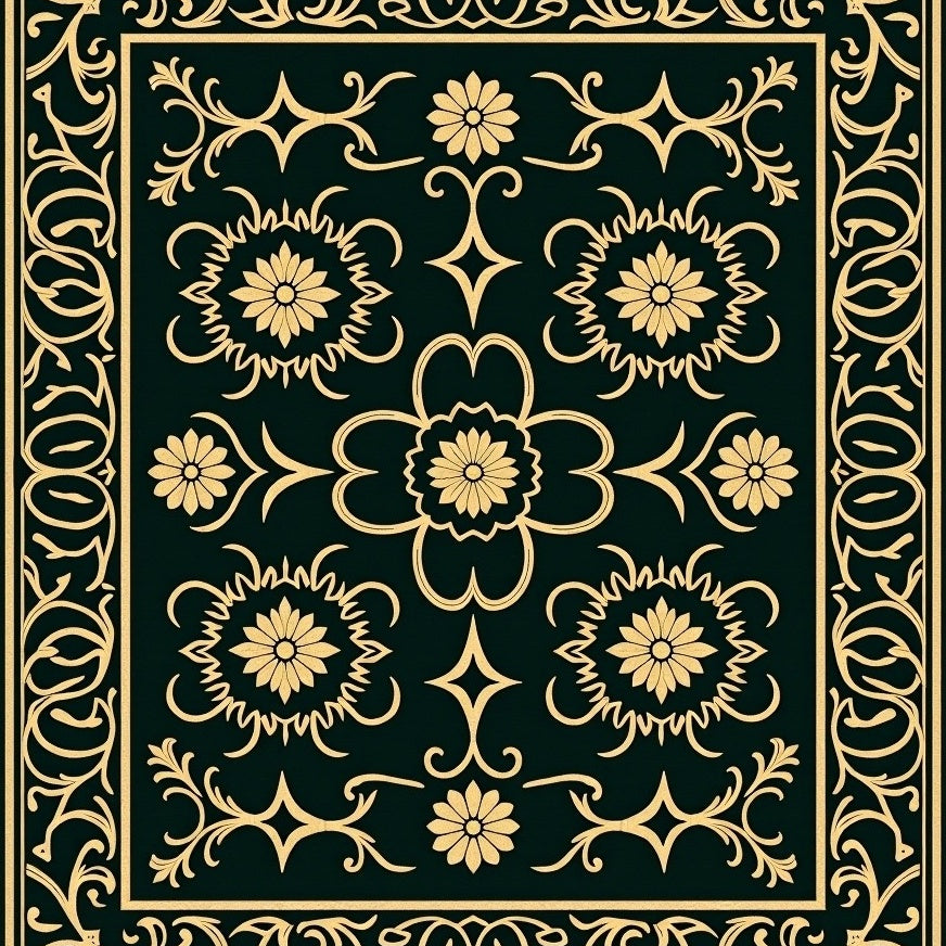 Ornate Tapestry Design with Intricate Floral Motifs(Green)