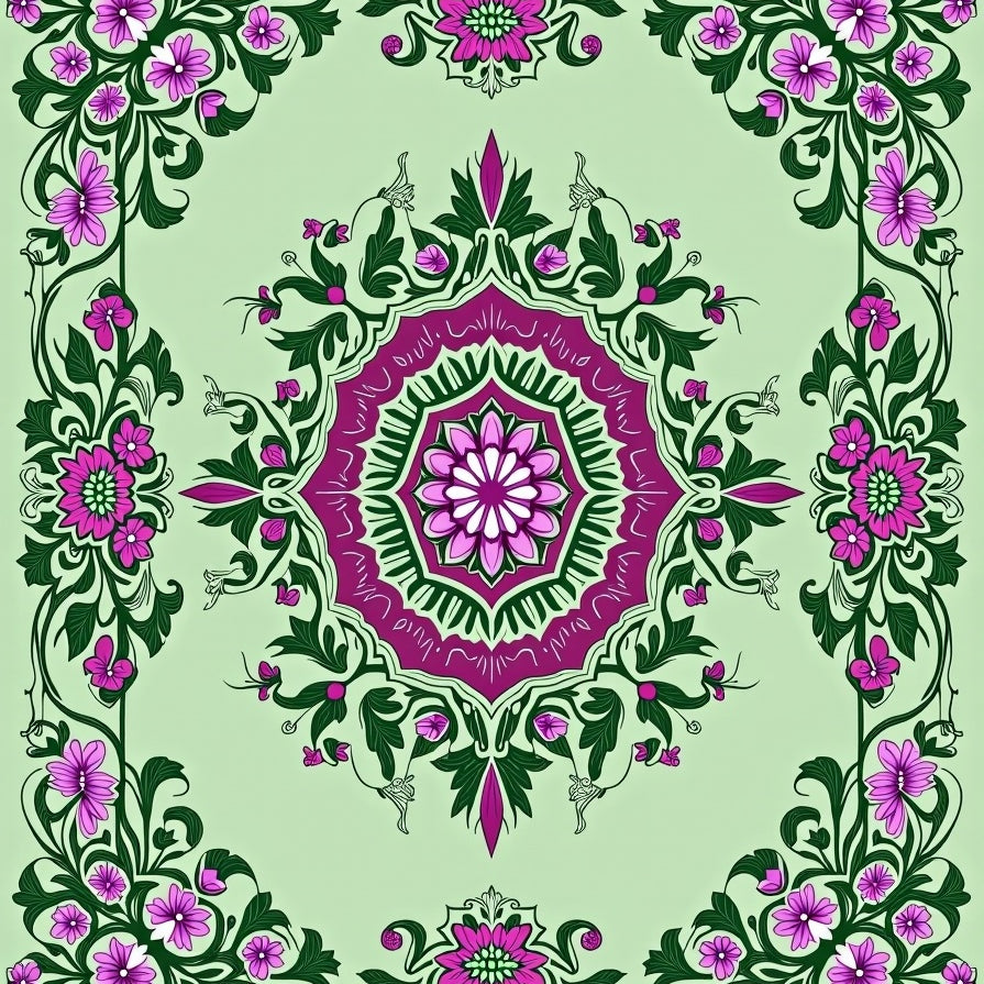 Botanical Whimsy Floral Medallion(Green)