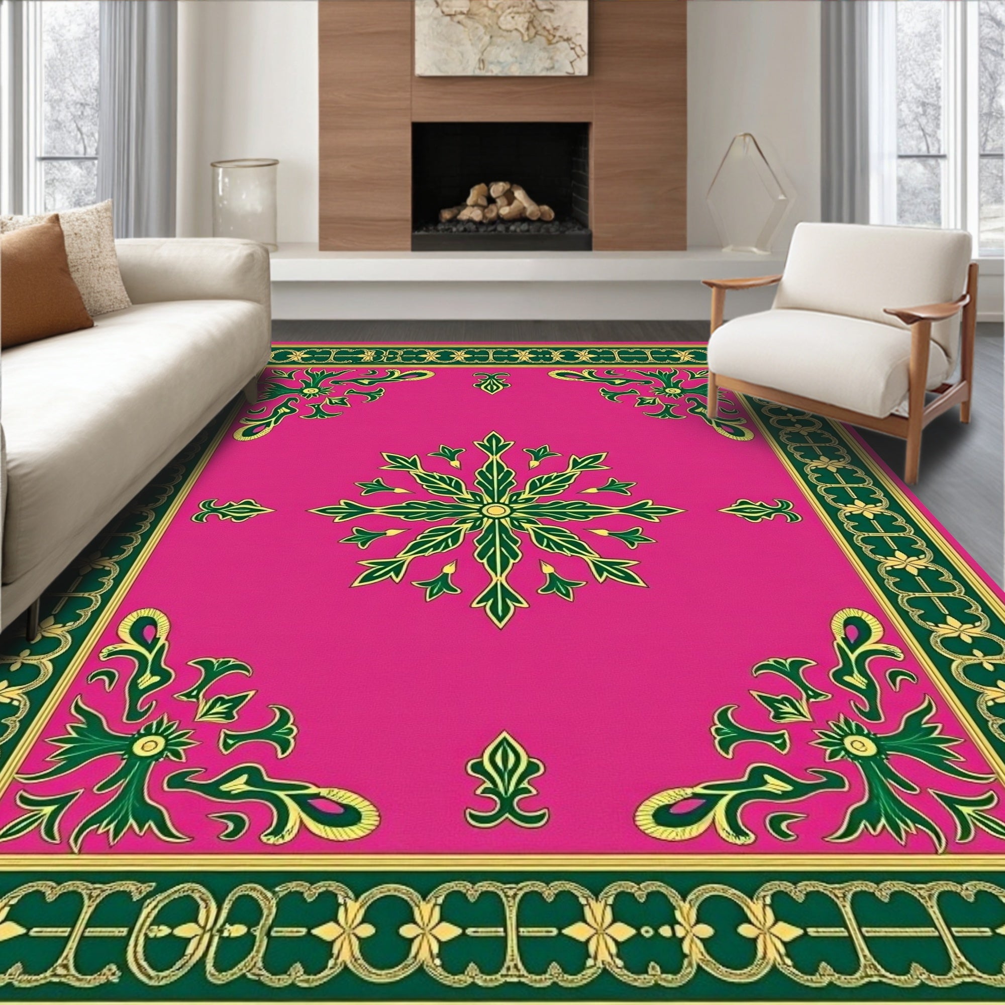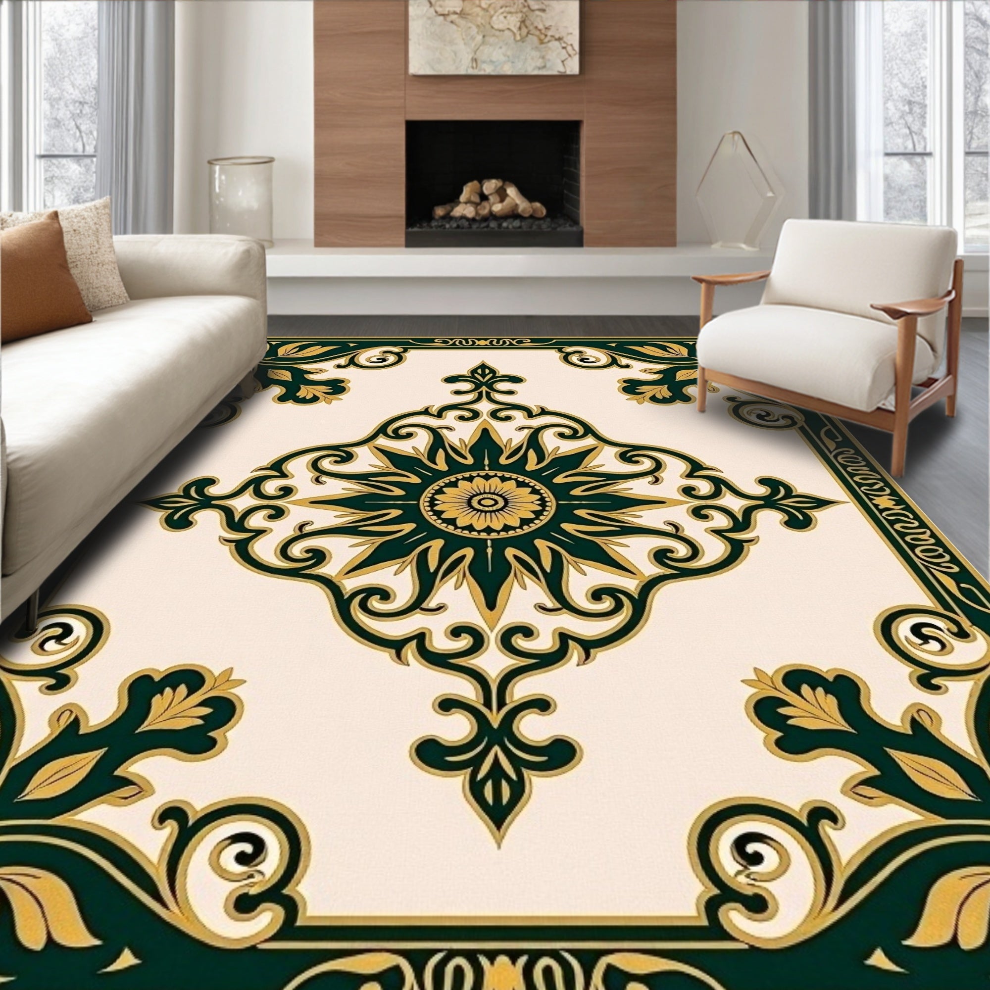 Tapestry Design with Symmetrical Floral Rosettes(Green)