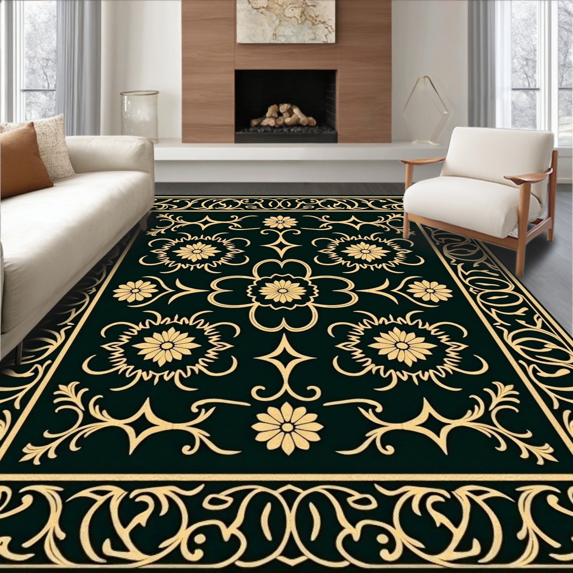 Vintage Oriental Scrollwork with Moody Floral Embellishments(Black)