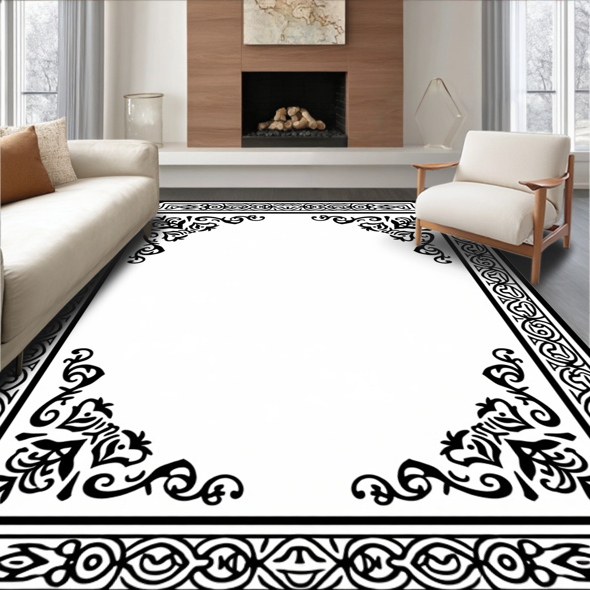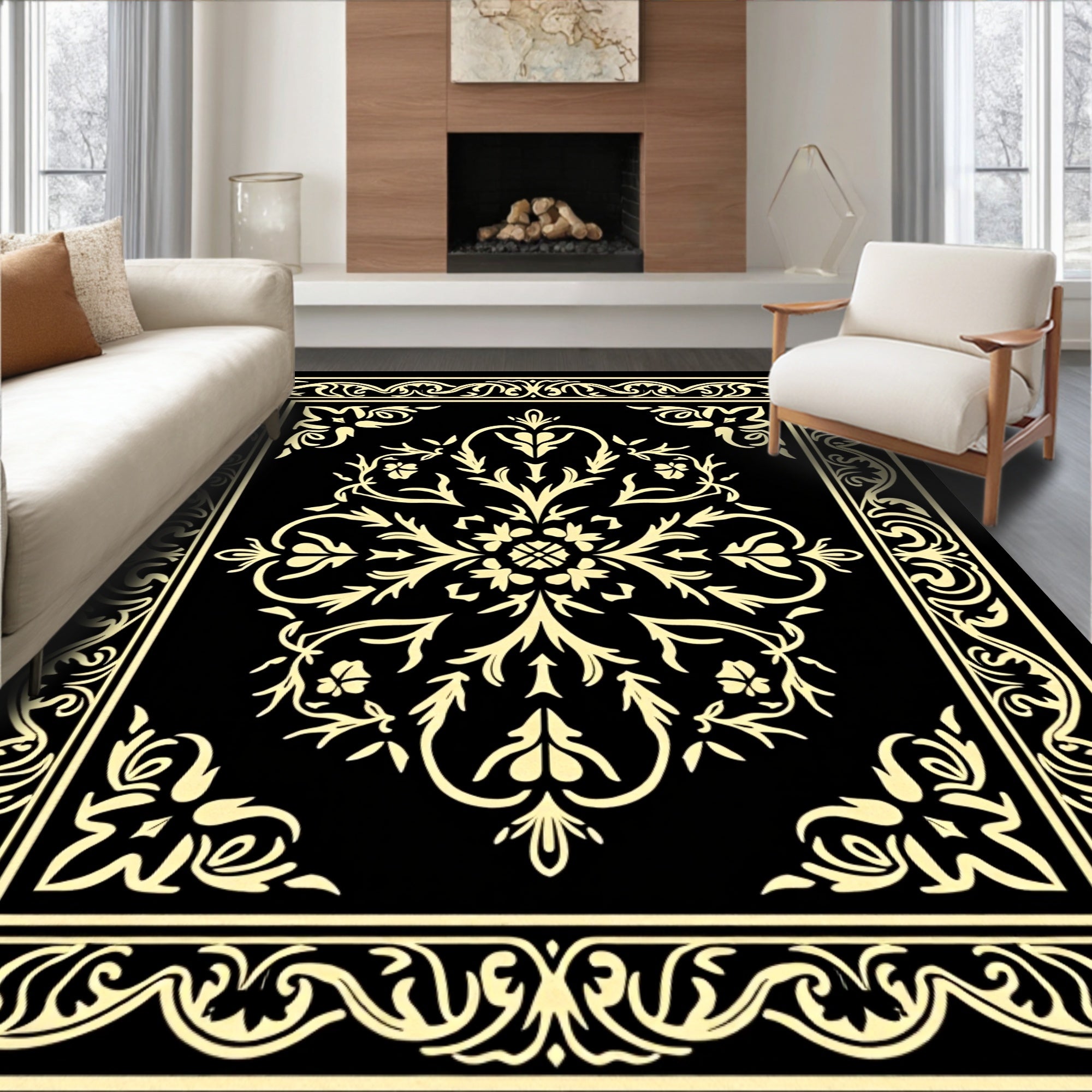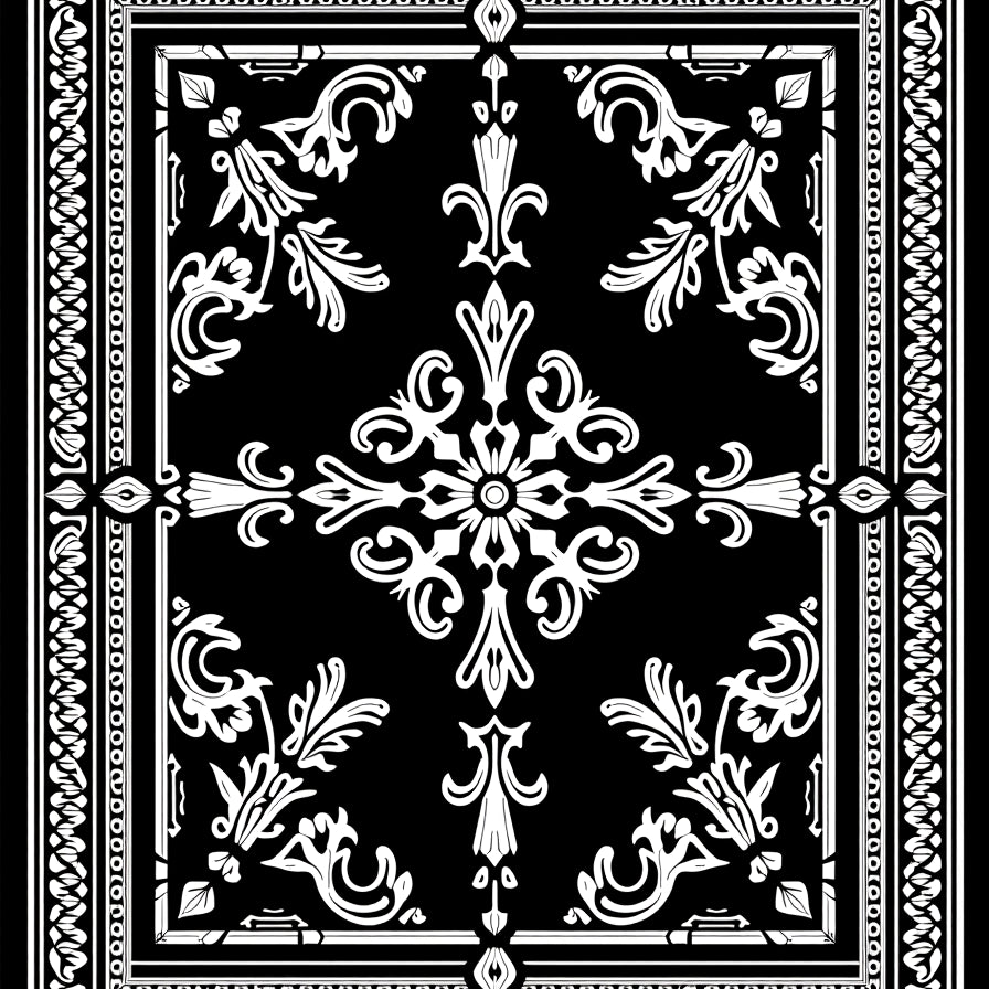 Elegant Damask Scrollwork with Classic Floral Embellishments (Black)