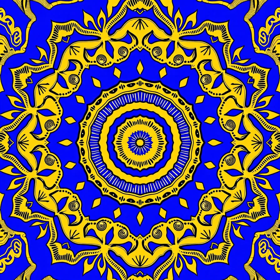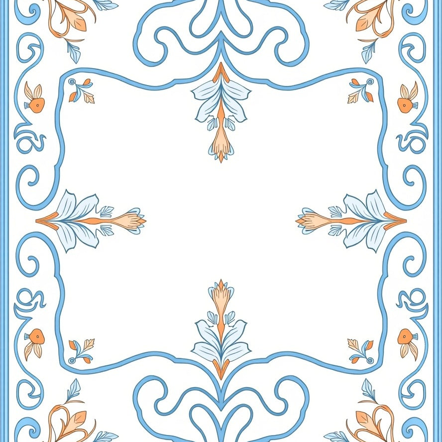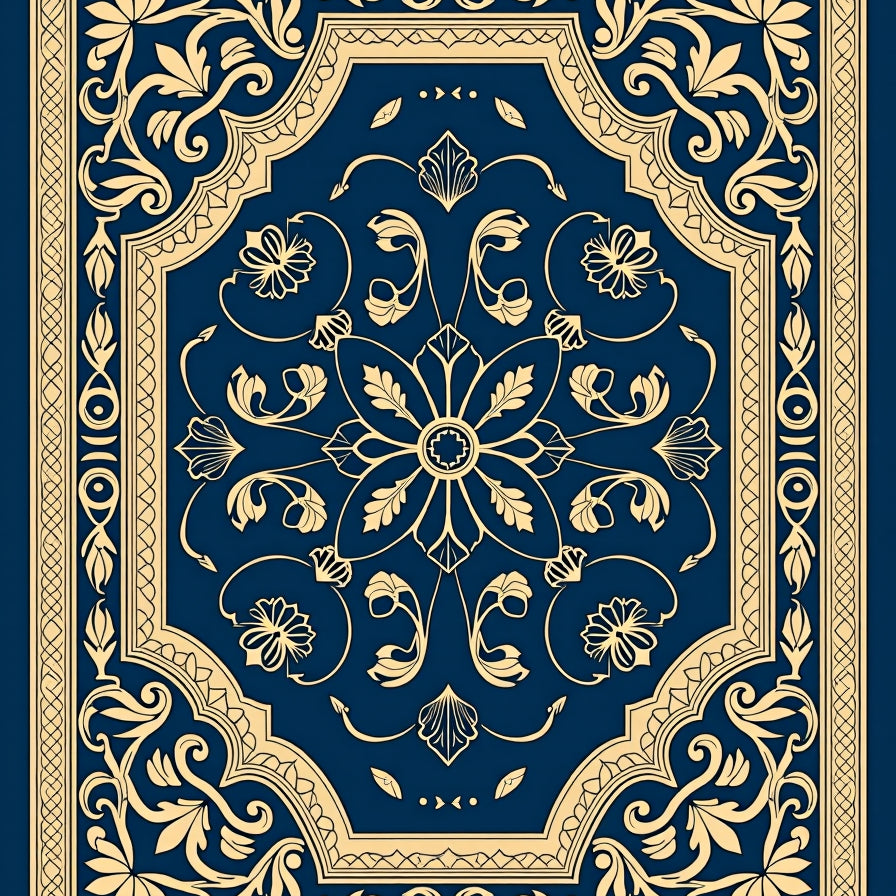 Floral Lattice with Radiating Petals and Baroque Filigree (Blue)