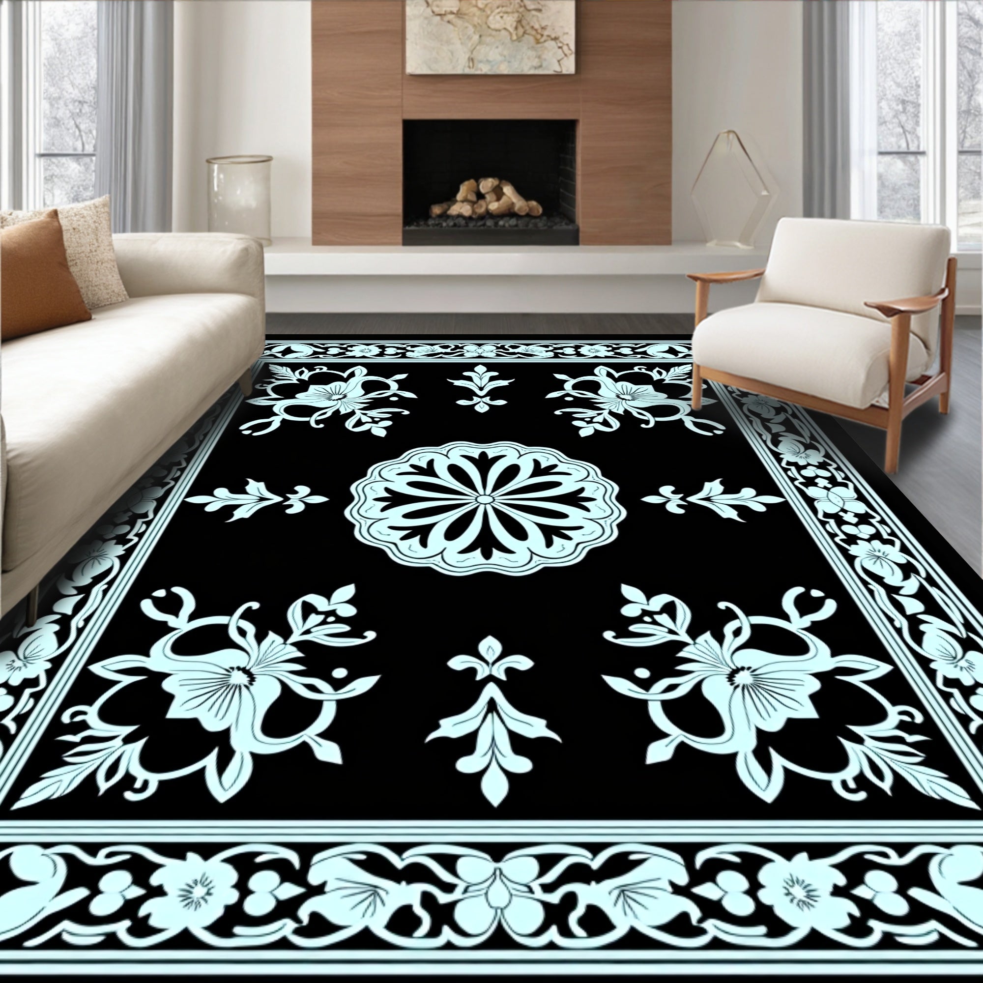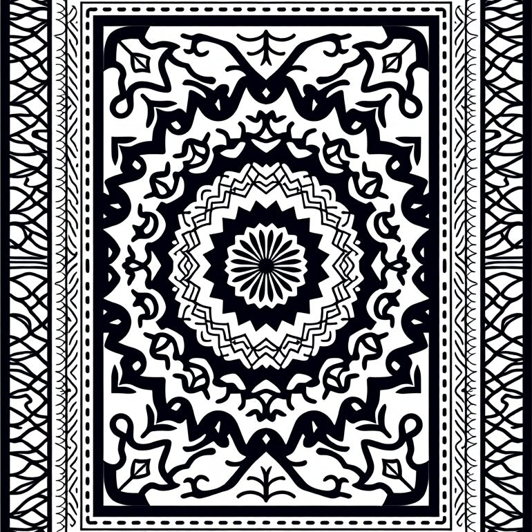 Medallion Ornate Throw Symmetrical Floral Burst (Black)