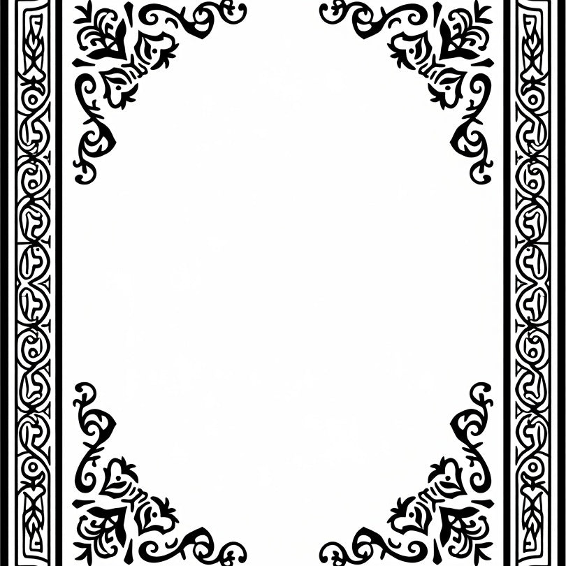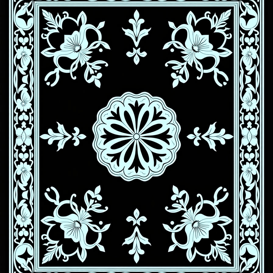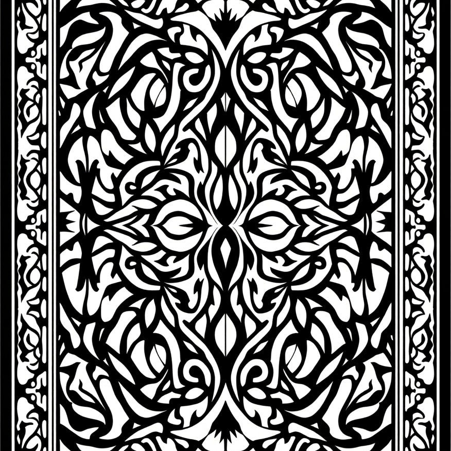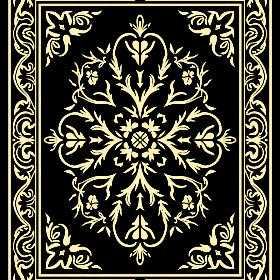 Floral Damask Inspired Motif with Elegant Vine Embellishments (Black)