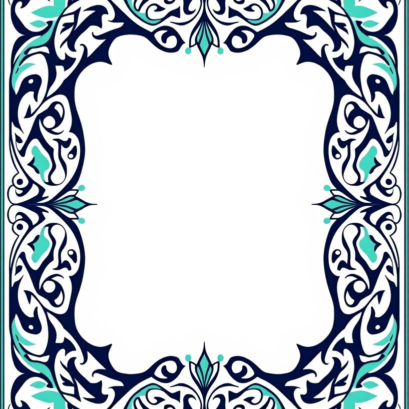 Art Nouveau Vinework with Stylized Leaf Swirls and Floral Bursts (Blue)