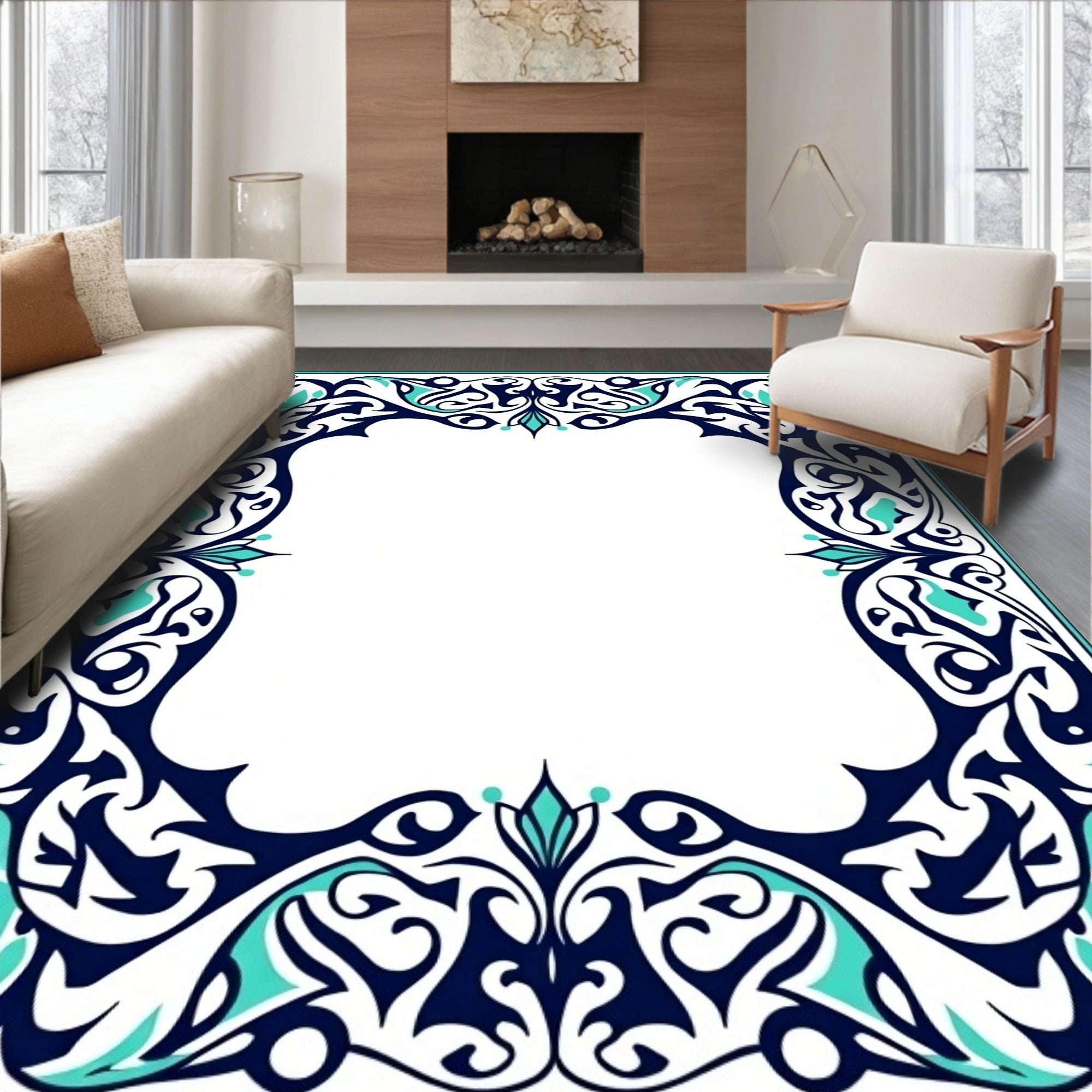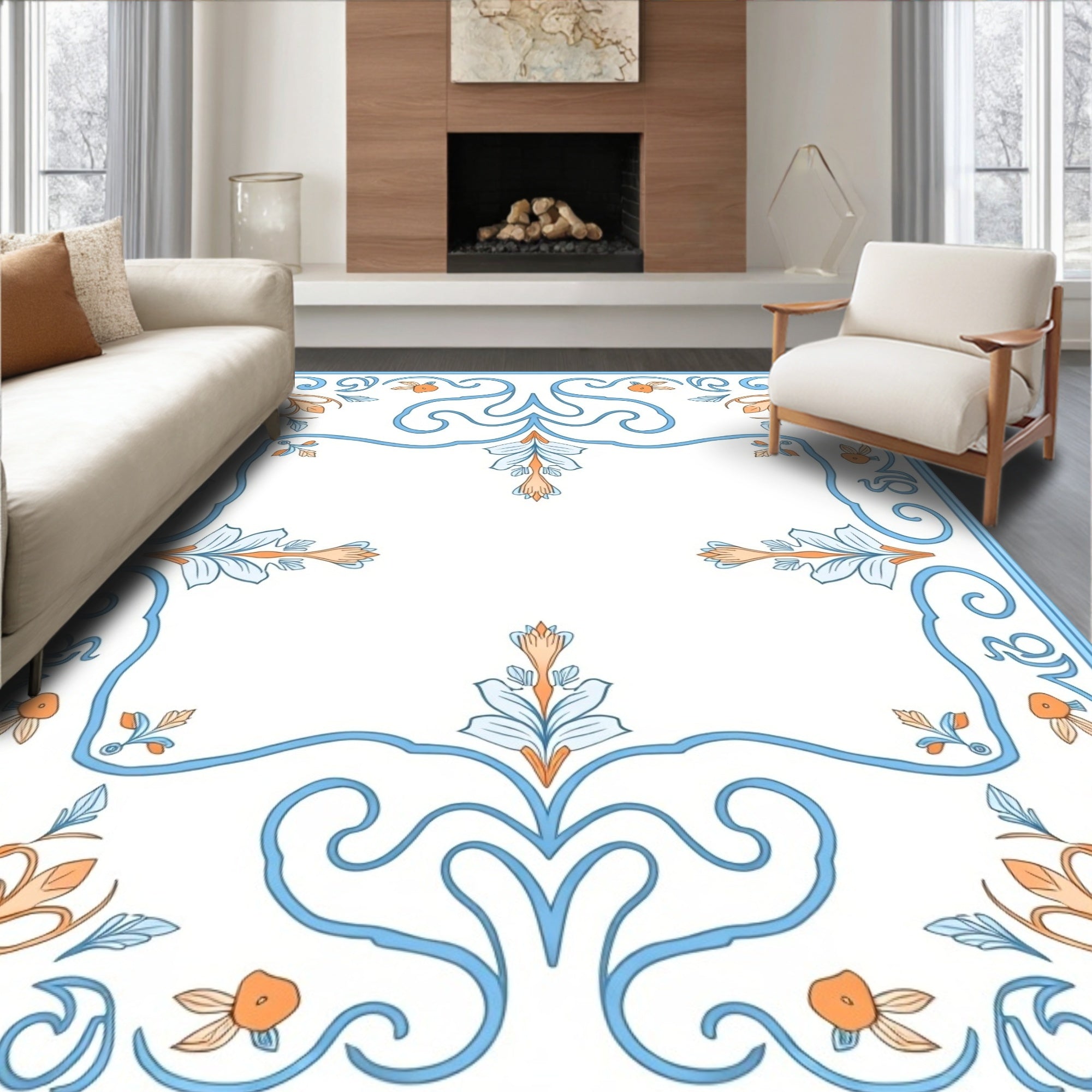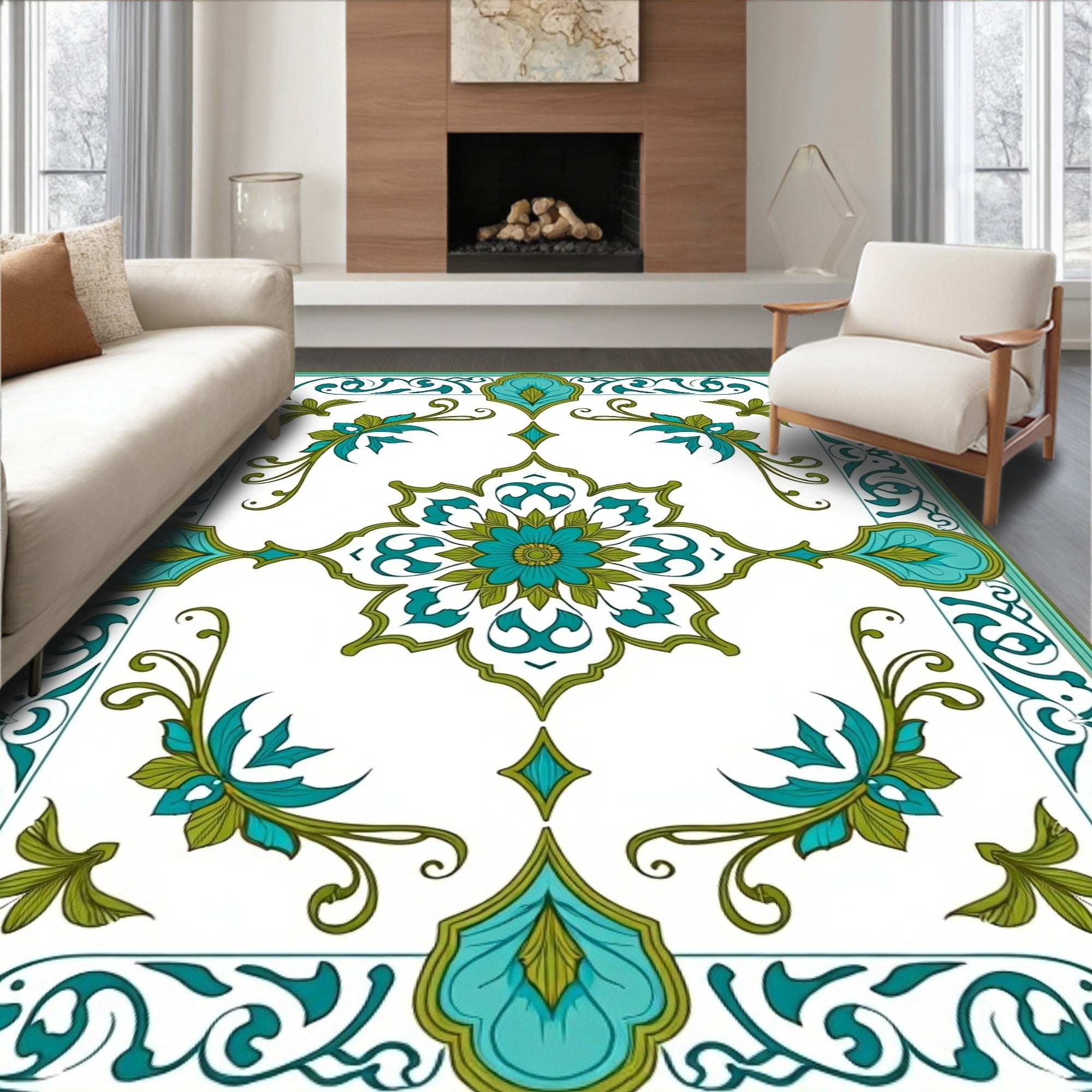 Boho Chic with Delicate Floral Swirls and Medallion Accents (Ivory)